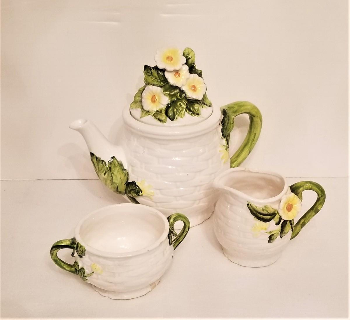 Lot #22 Vintage LEFTON Teapot with Creamer/Sugar