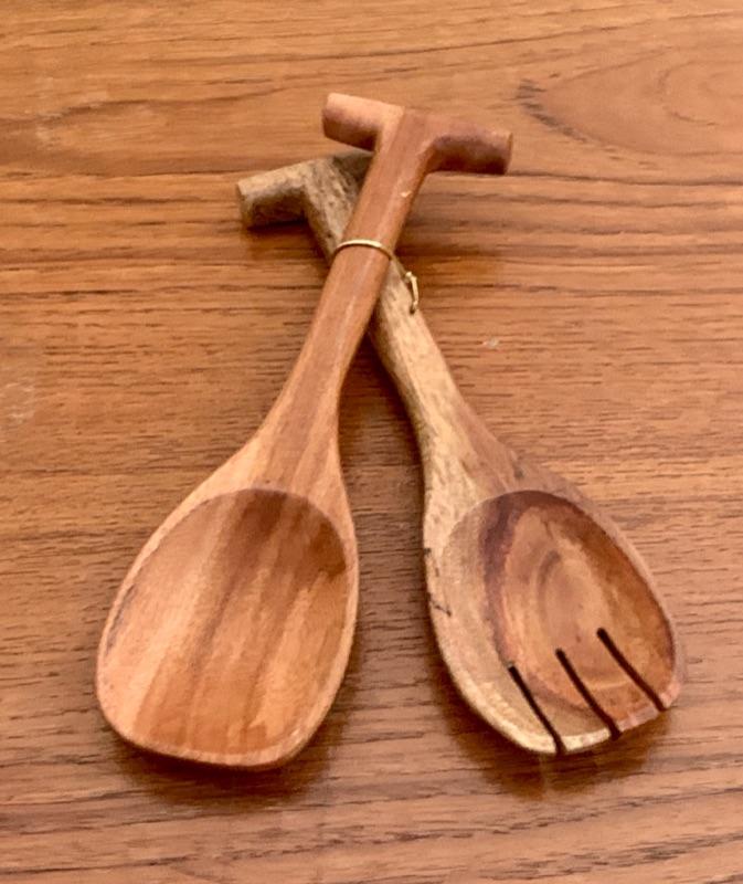 Lot 22 - Vintage MCM Wooden Salad Bowl Serving Set