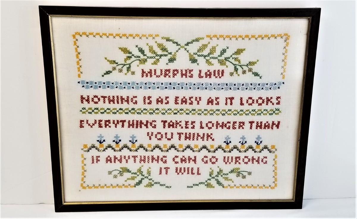 Lot #22  Vintage "Murphy's Law" Cross Stitch in Frame