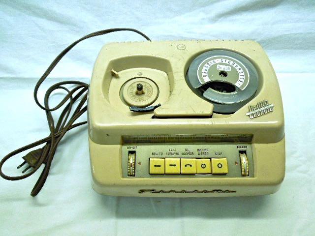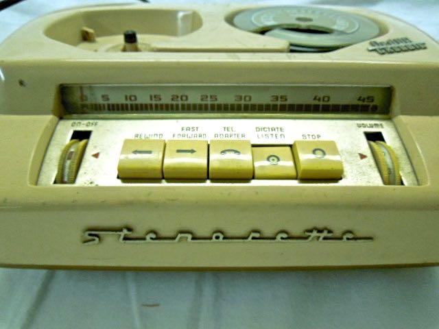 Dictation machine. Reel to reel tape. No tape. Includes microphone. Does not seem to work. Keys are locked.