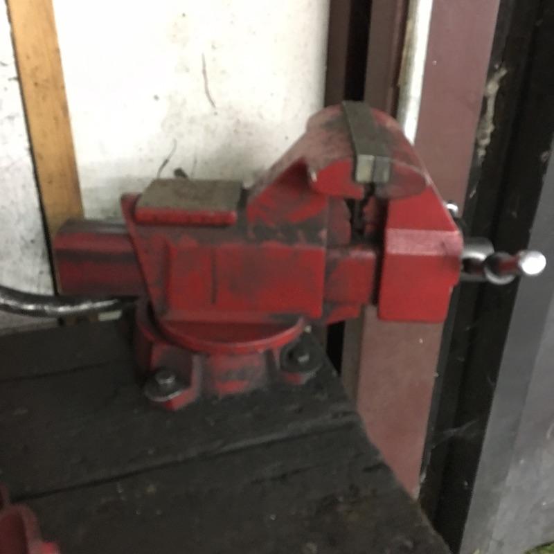 measures 72” x 14” x 37”. Vise has bent handle, see pictures.