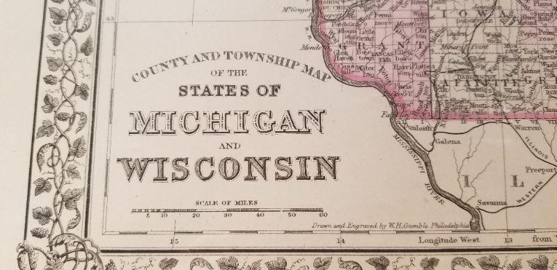LOT #220: State of Michigan and Wisconsin Antique Map