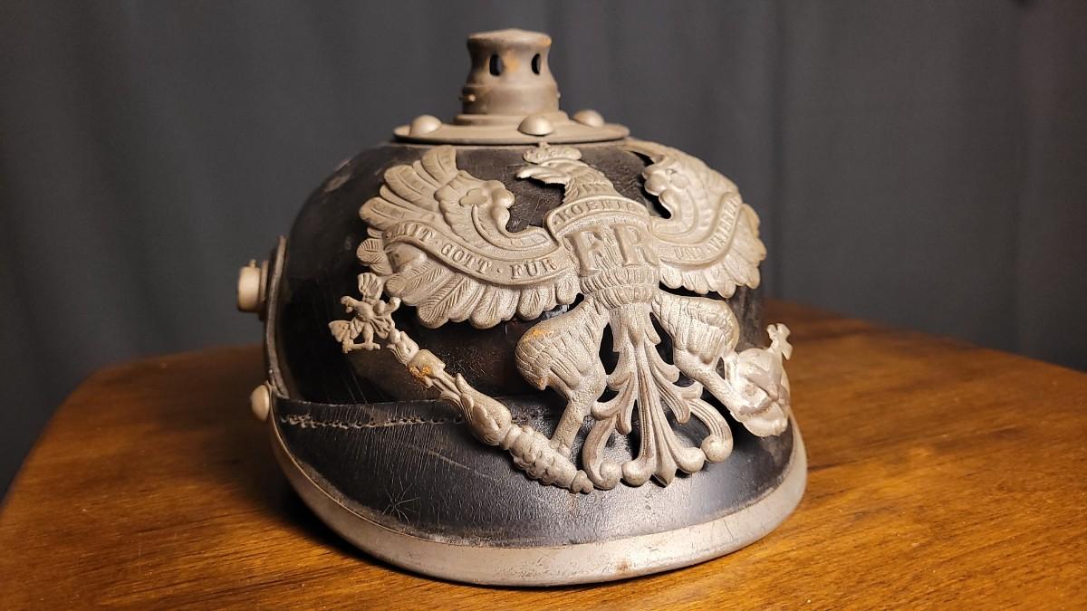 THE GERMAN ARMY’S spiked helmet or pickelhaube (is arguably one of the most enduring symbols of the First World War. The polished black leather helmet with ornamental metal spike on top did very little to protect the wearer from bullets or shell fragments, but it was instantly recognizable by friend and foe alike.