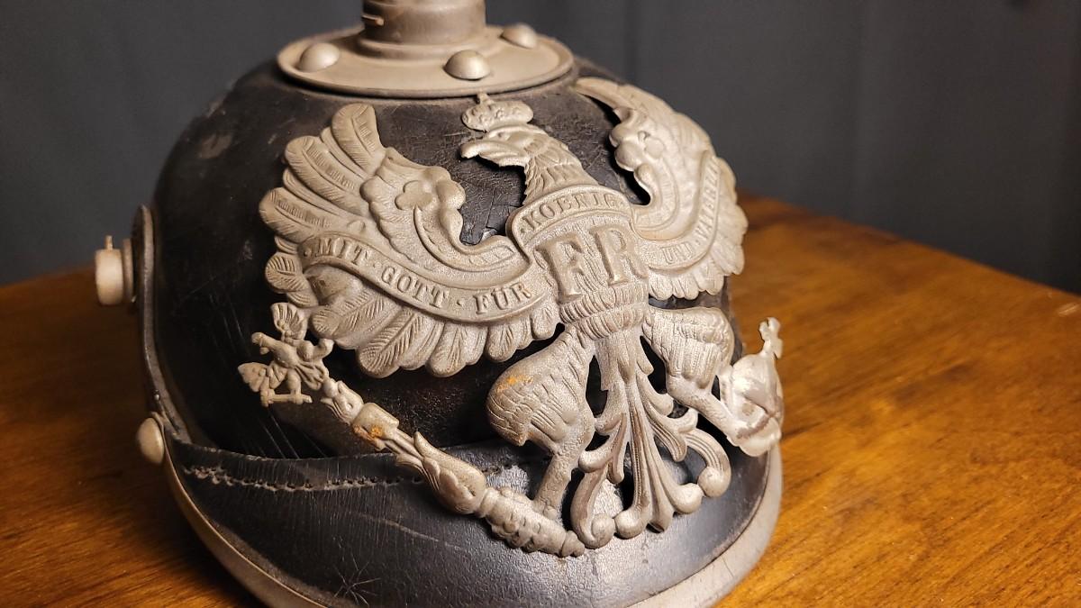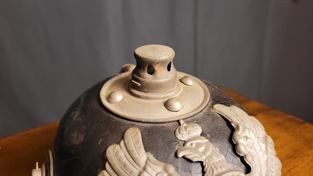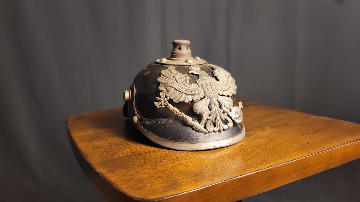 Lot 220: Antique WWI German Prussian Officer Spike Helmet Pickelhaube Casque