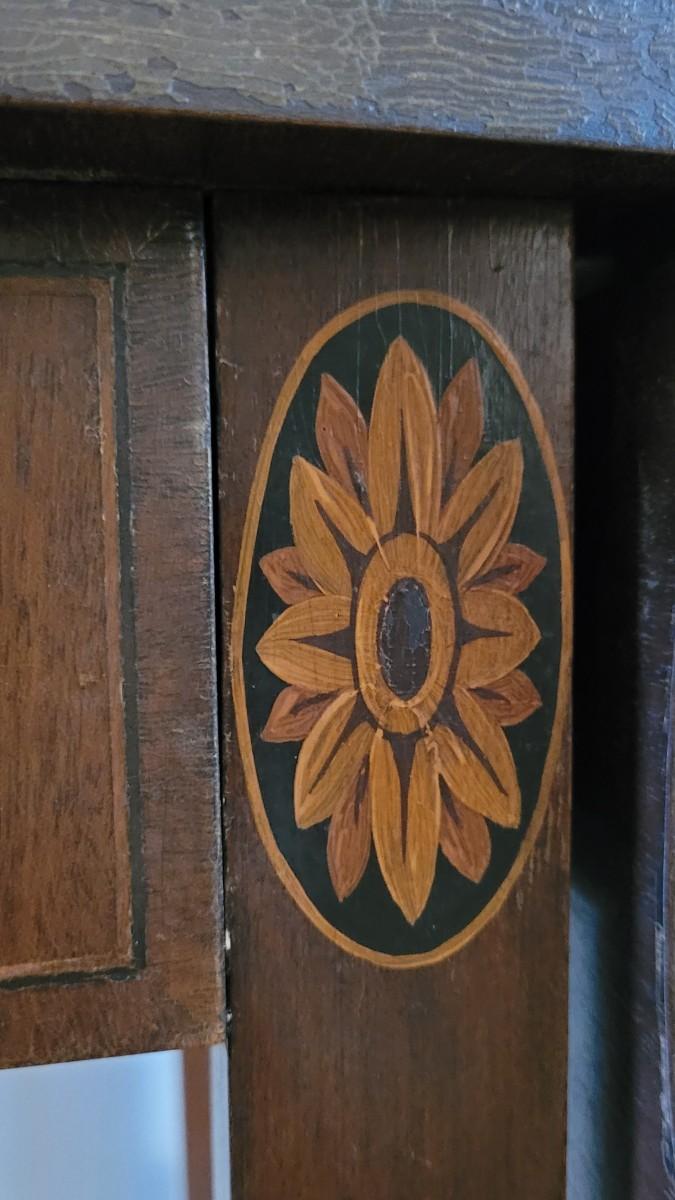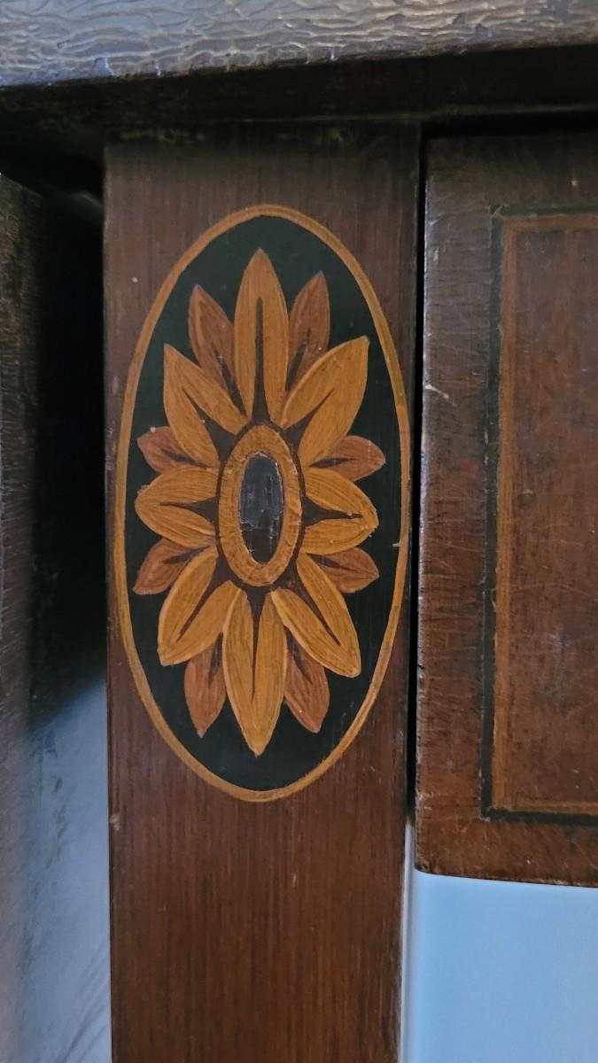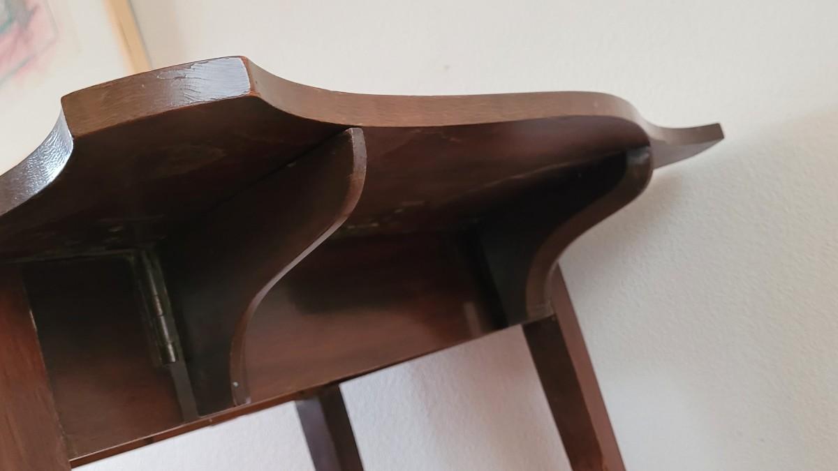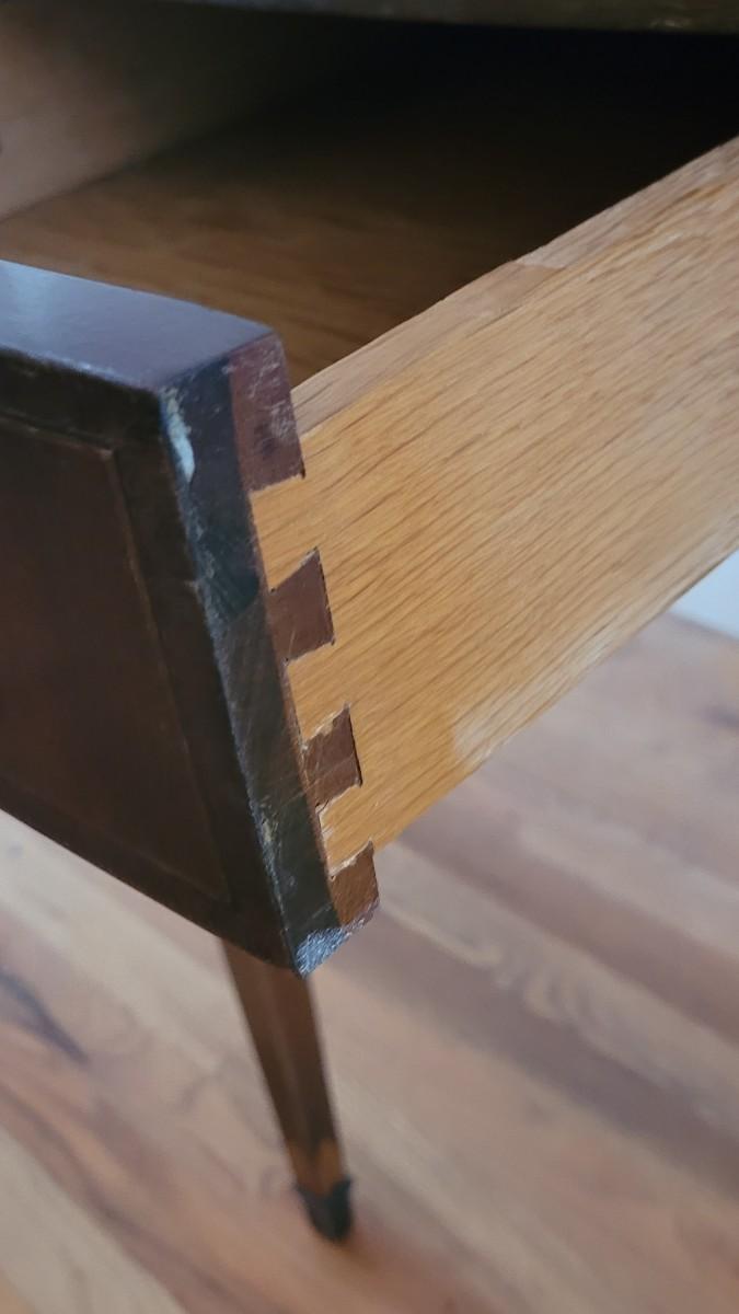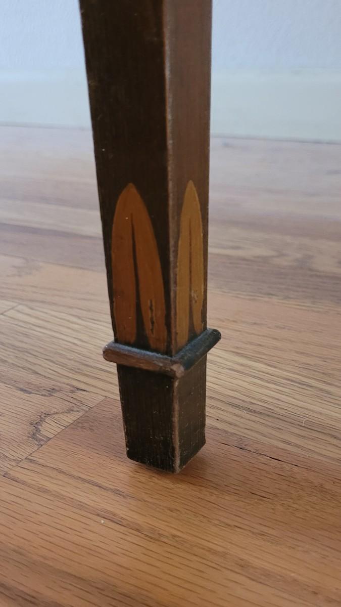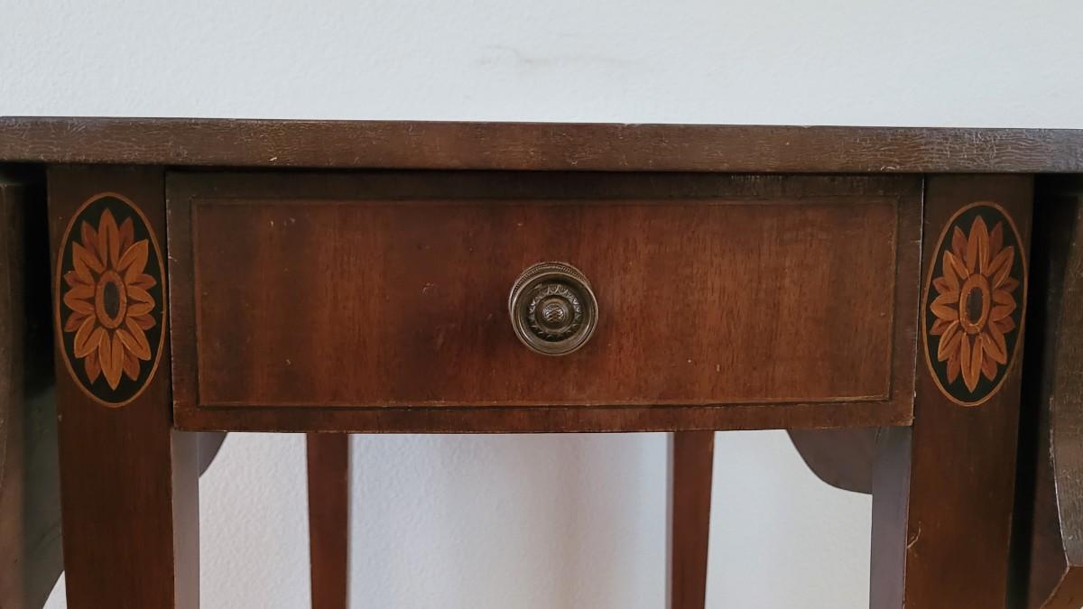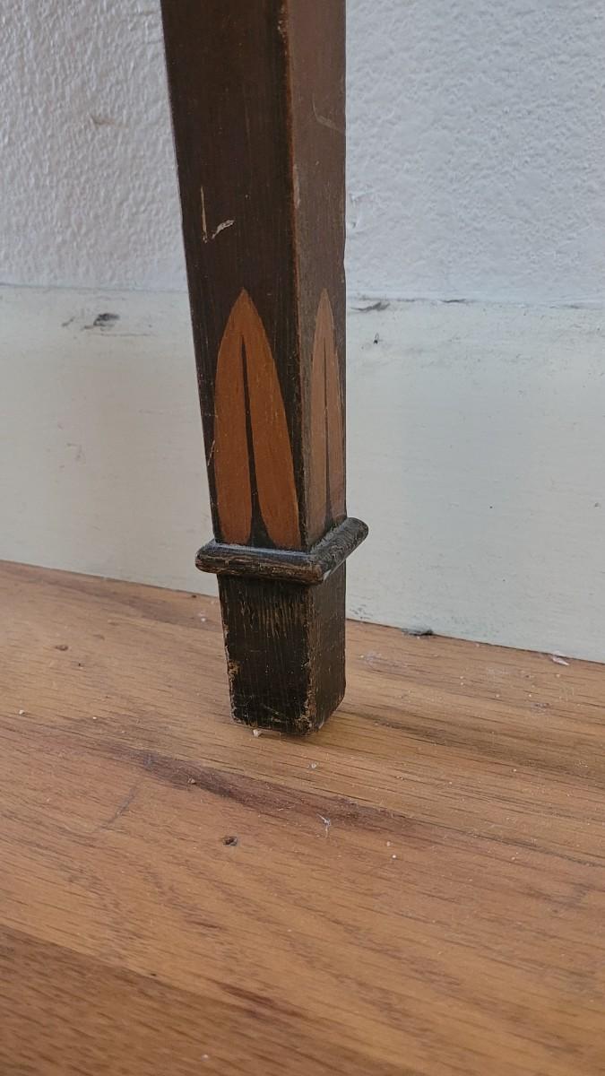 Thus beautiful antique drop leaf table has Handpainted details. Has some crackling consistent with age.