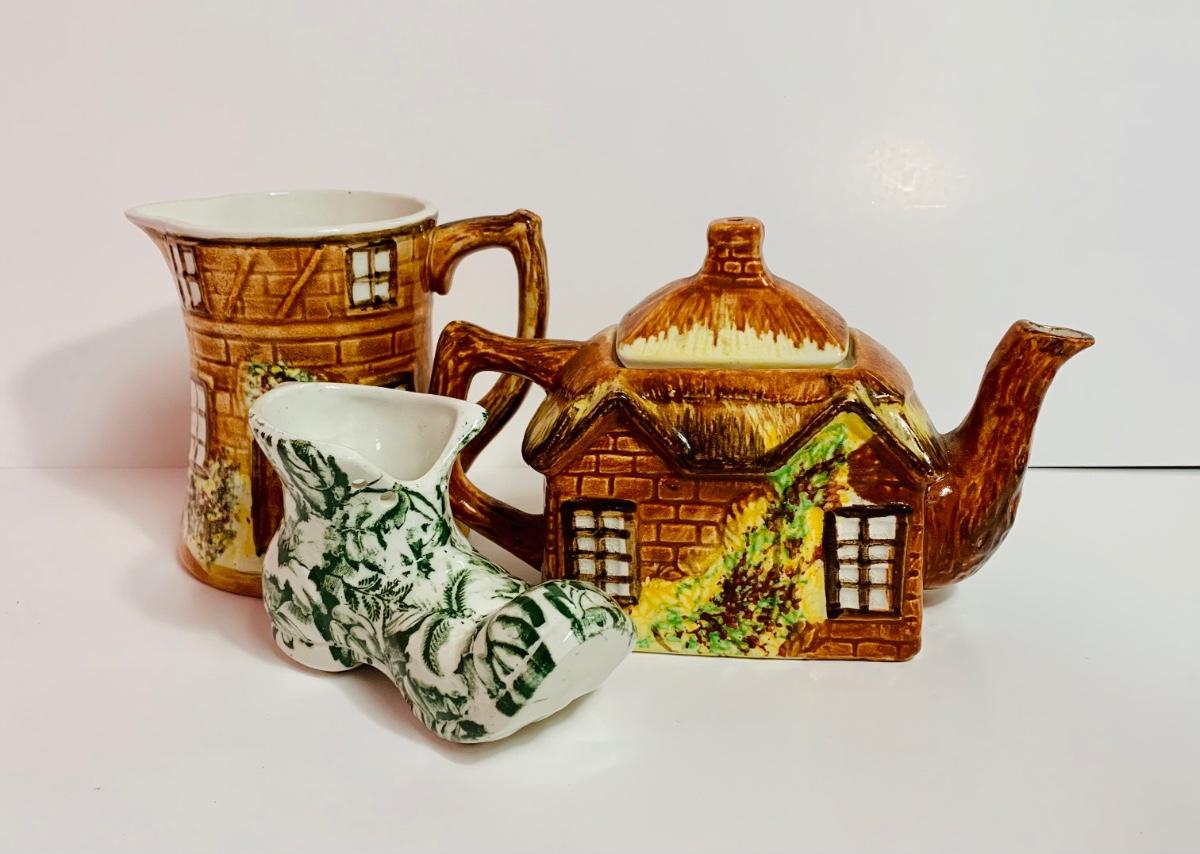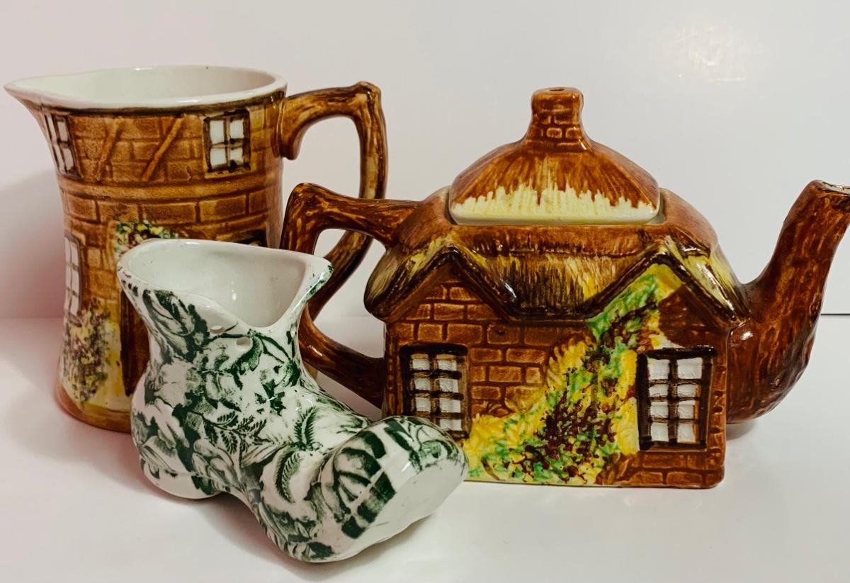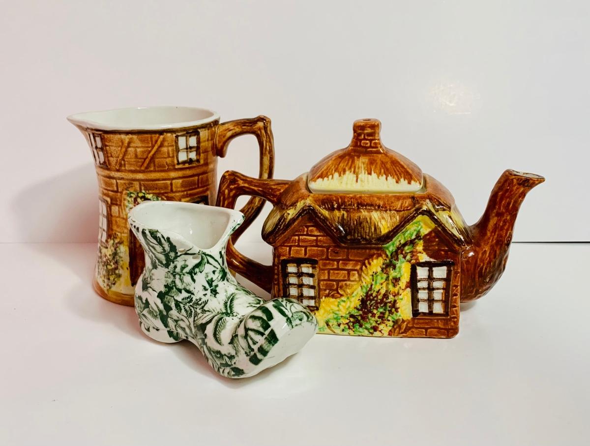 Beautiful matching teapot & pitcher by Price Kensington & Fenton "Azalea" boot planter