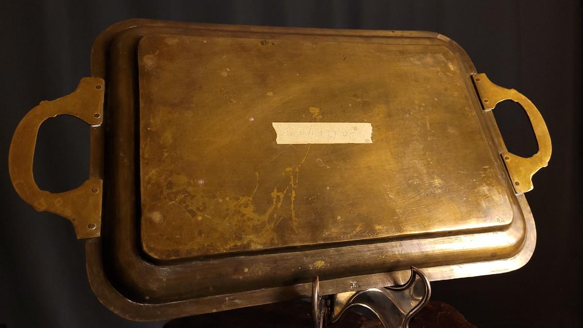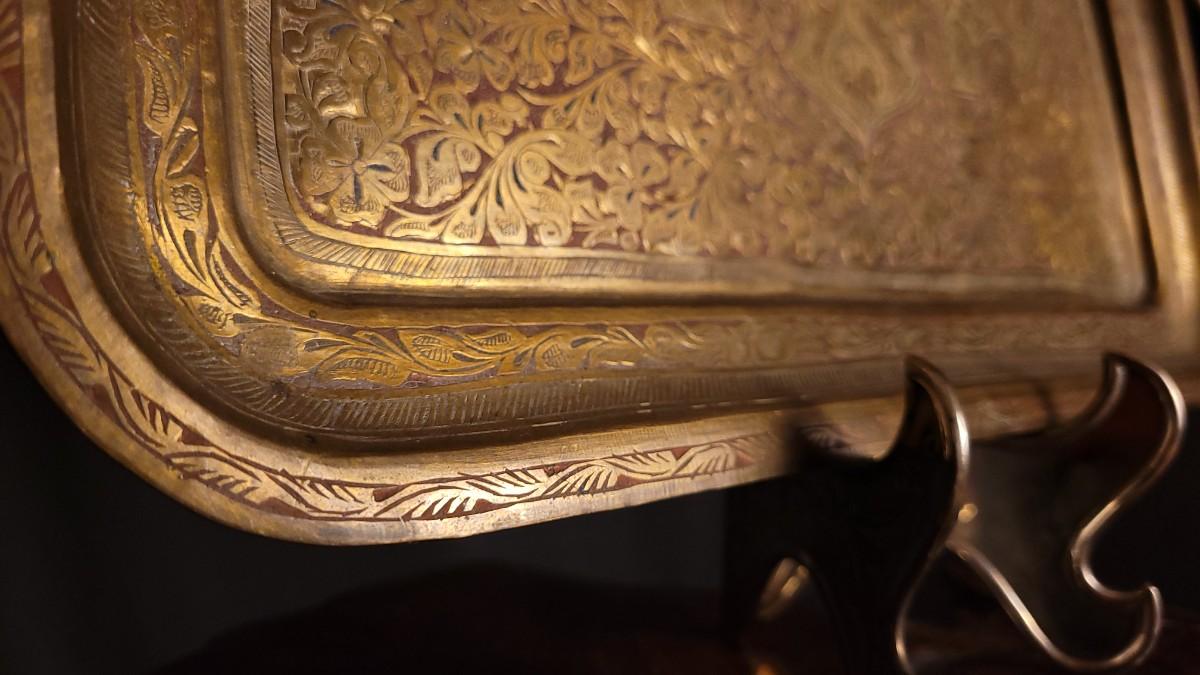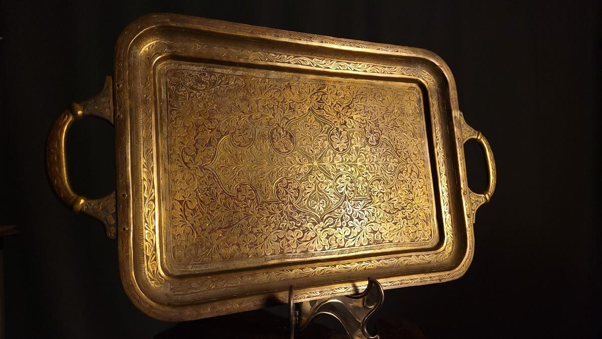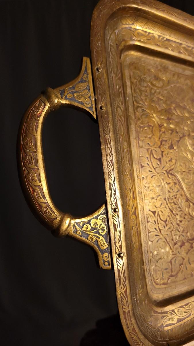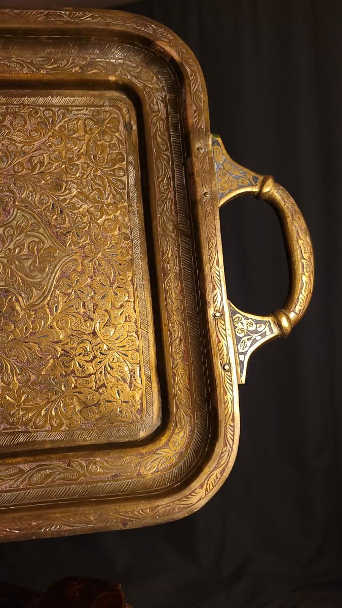 Lot 220: Vintage Etched Copper Seeving Tray Made in India
