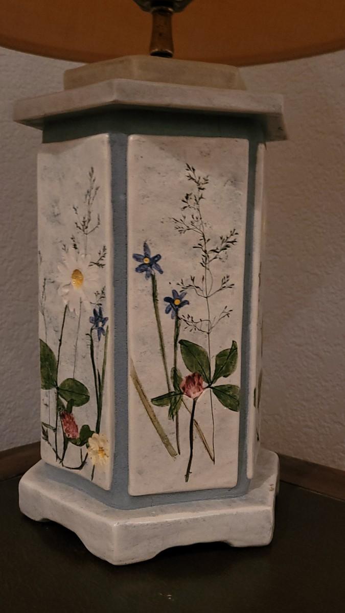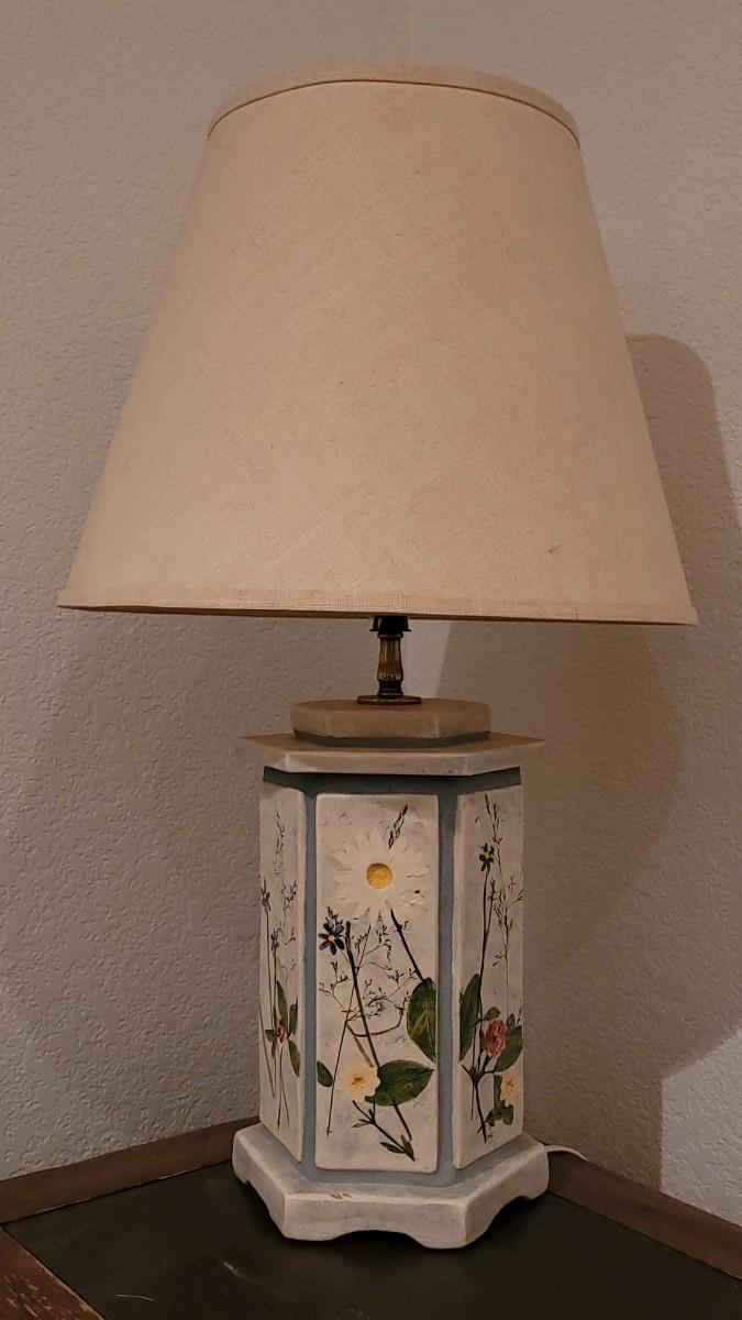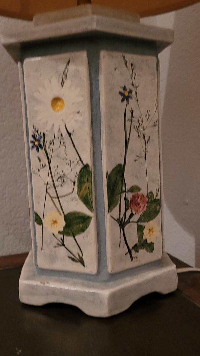 This is a beautiful unique lamp that has handpainted imprinted flowers.