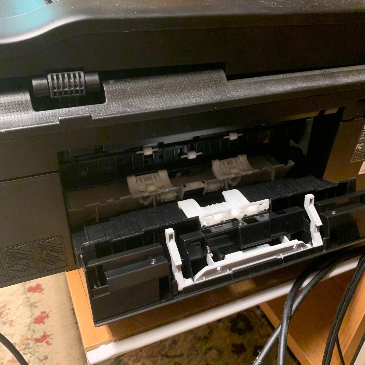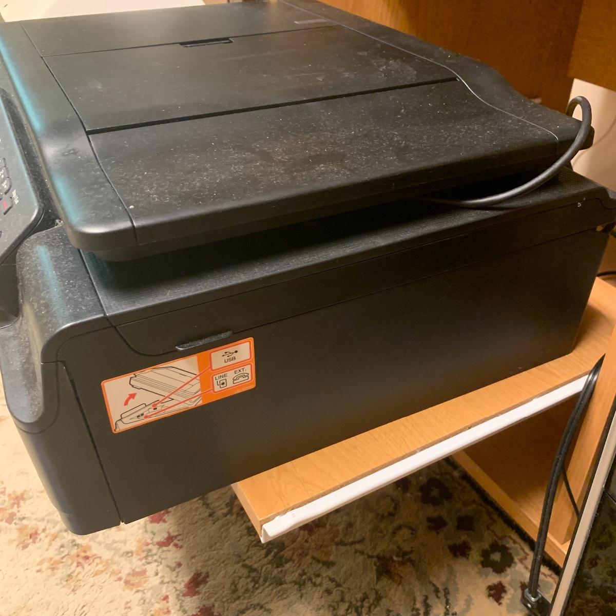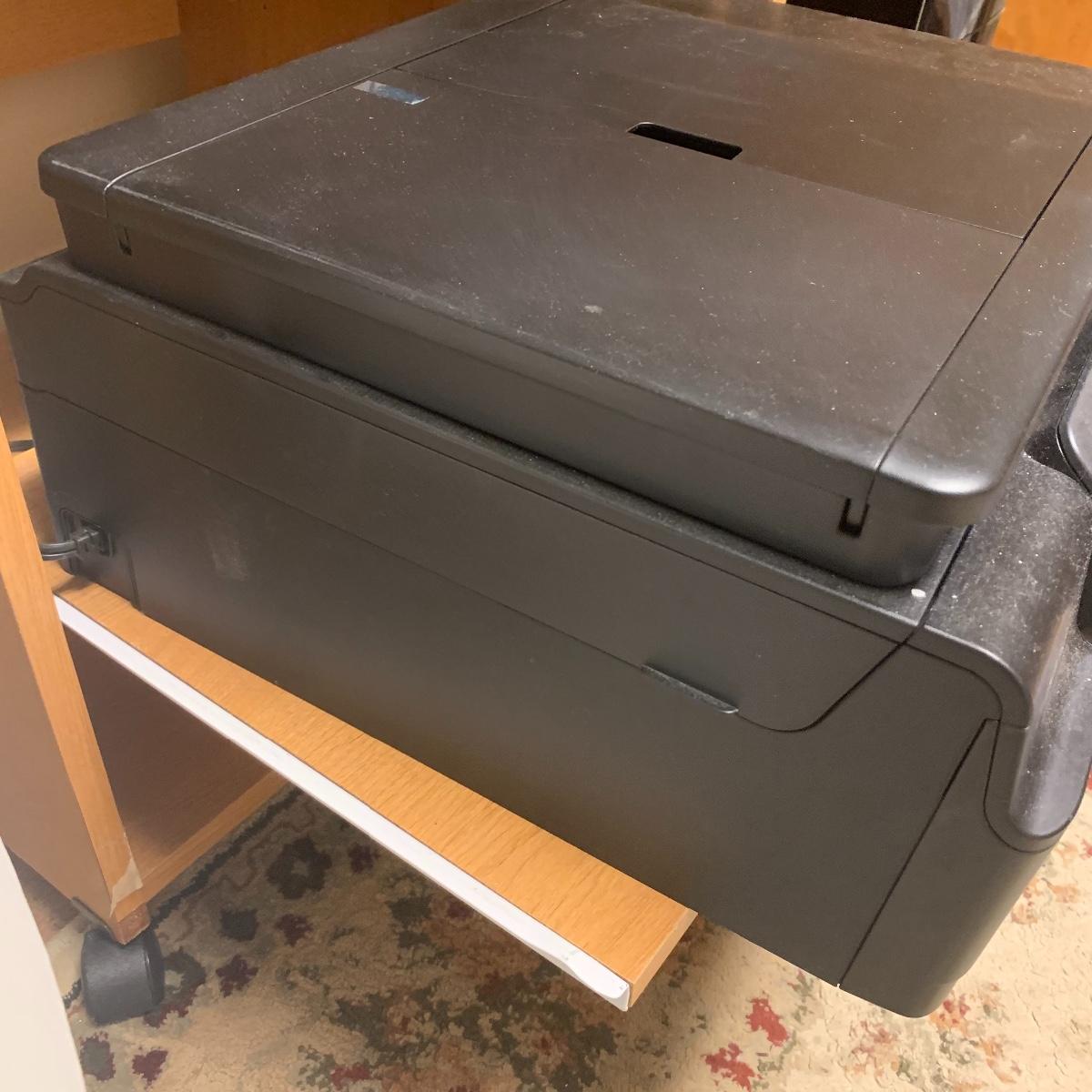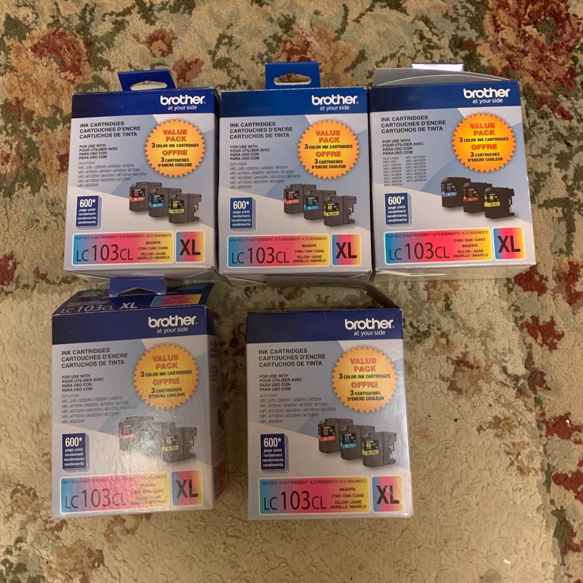 This lot includes one Brother MFC-J470DW printer and eight cartridges of Brother ink. There are five packages of colored ink cartridges and three packages of black ink cartridges. The printer screen is slightly scratched (see photos). Cannot confirm the printer works. It measures 14.5in x 16in x 8in.