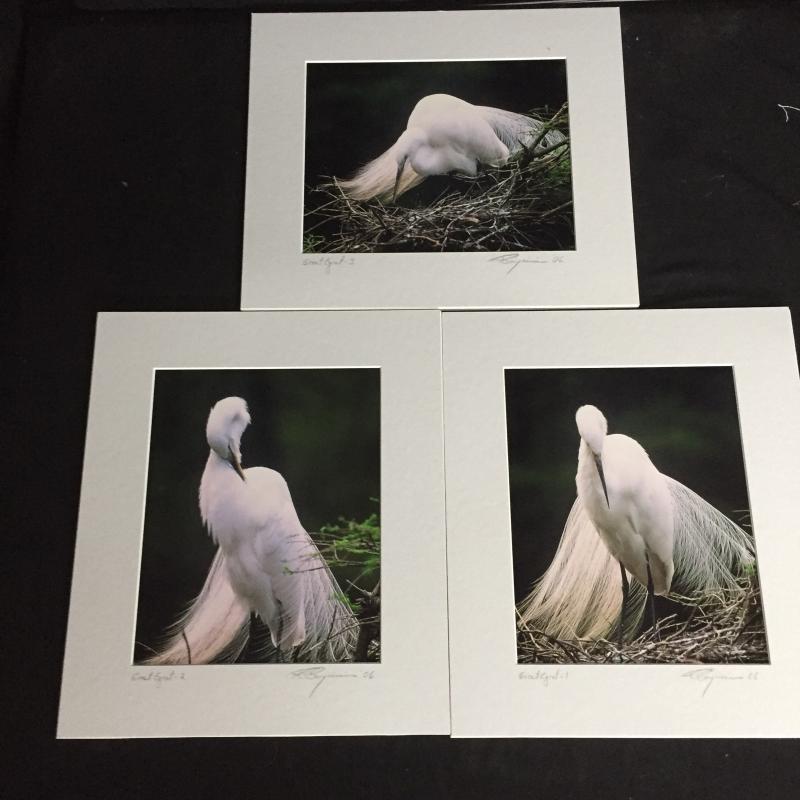 Captivating Egret photos matted and ready for framing. Great photos of these majestic birds. Largest measures 12” x 16”. Shipping available