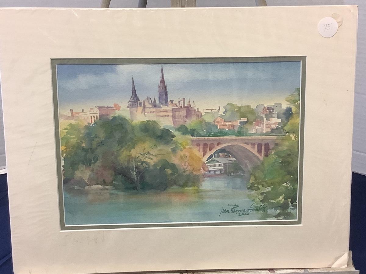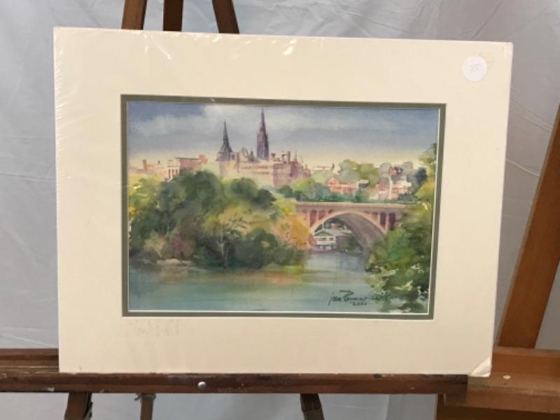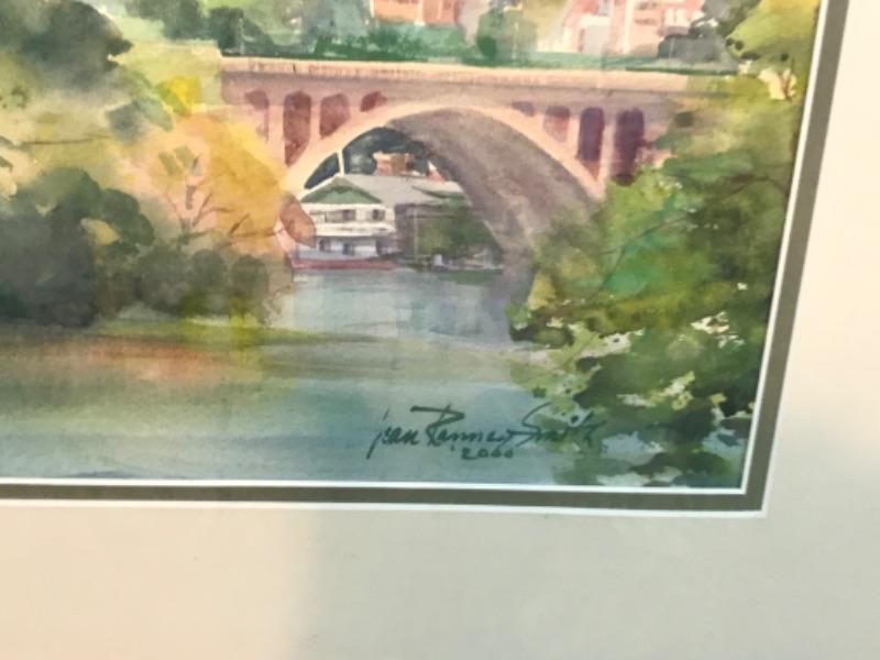 Jean Ranney Smith signed original artwork. “Key Bridge In Daytime” is an original watercolor painting and measures 18”x14” including mat
