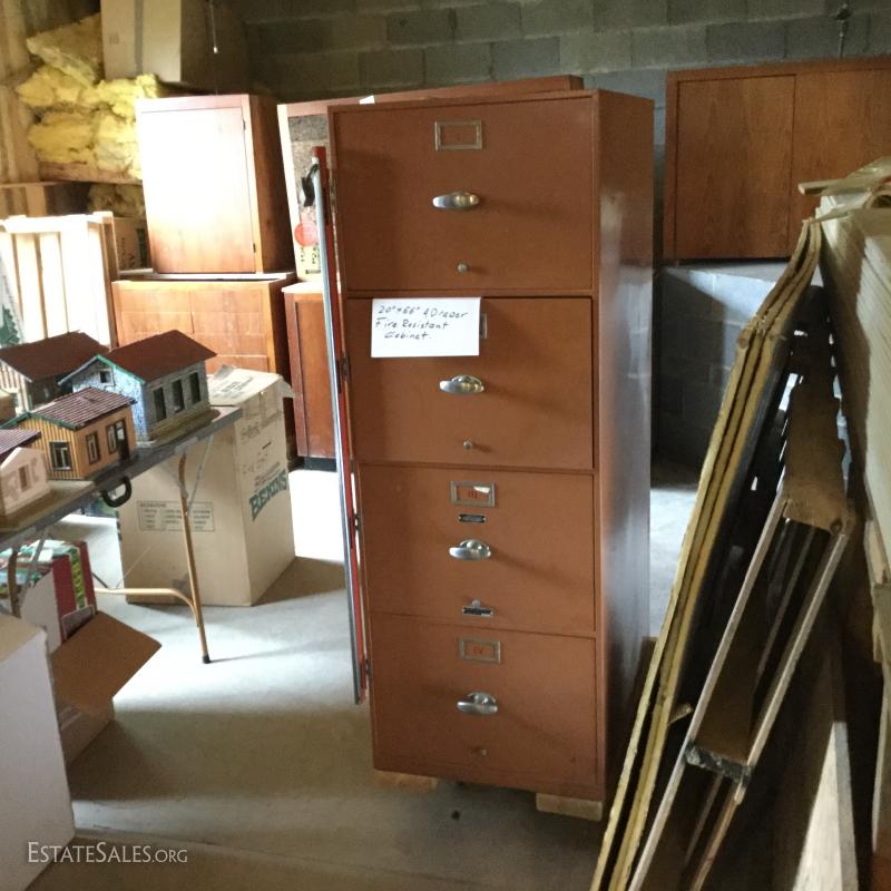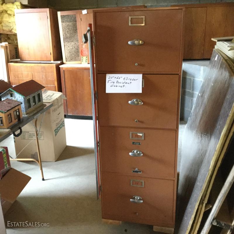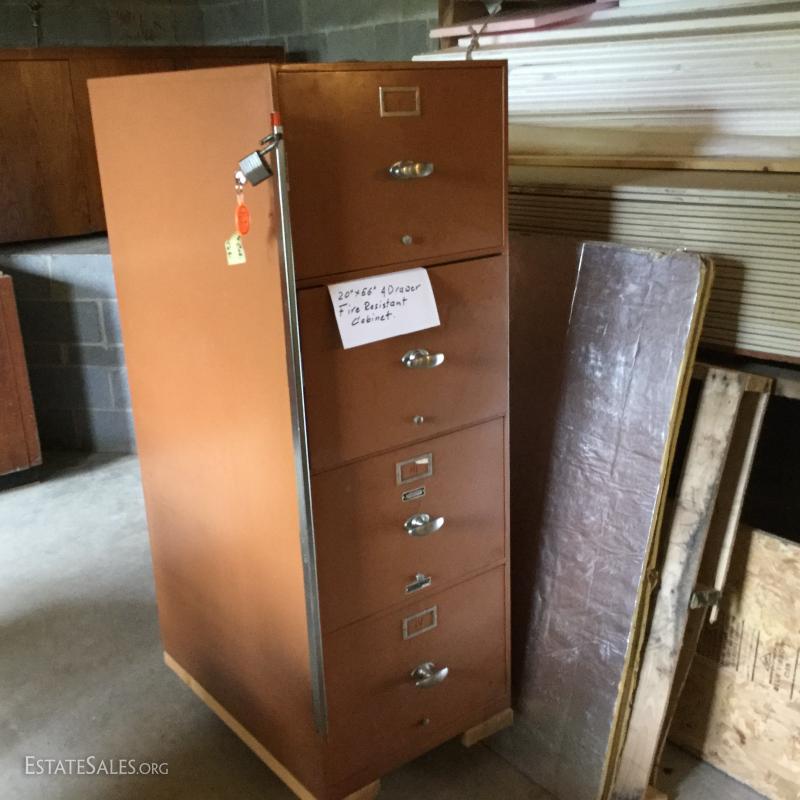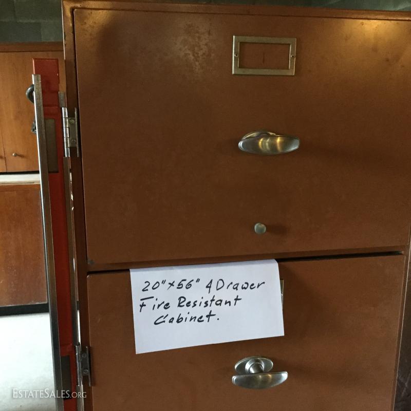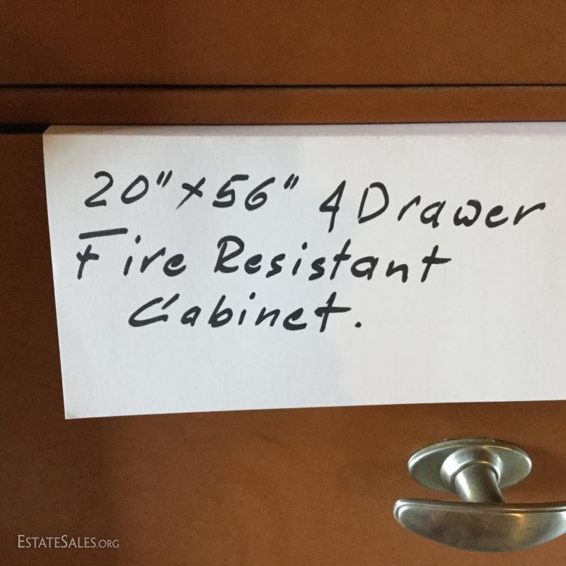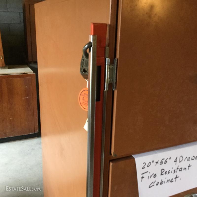 4-drawer locking fire resistant file cabinet, measures 20" x 56". Currently on wheel cart as item is very dense. This lot is available for local pick up in Hendersonville, NC only.