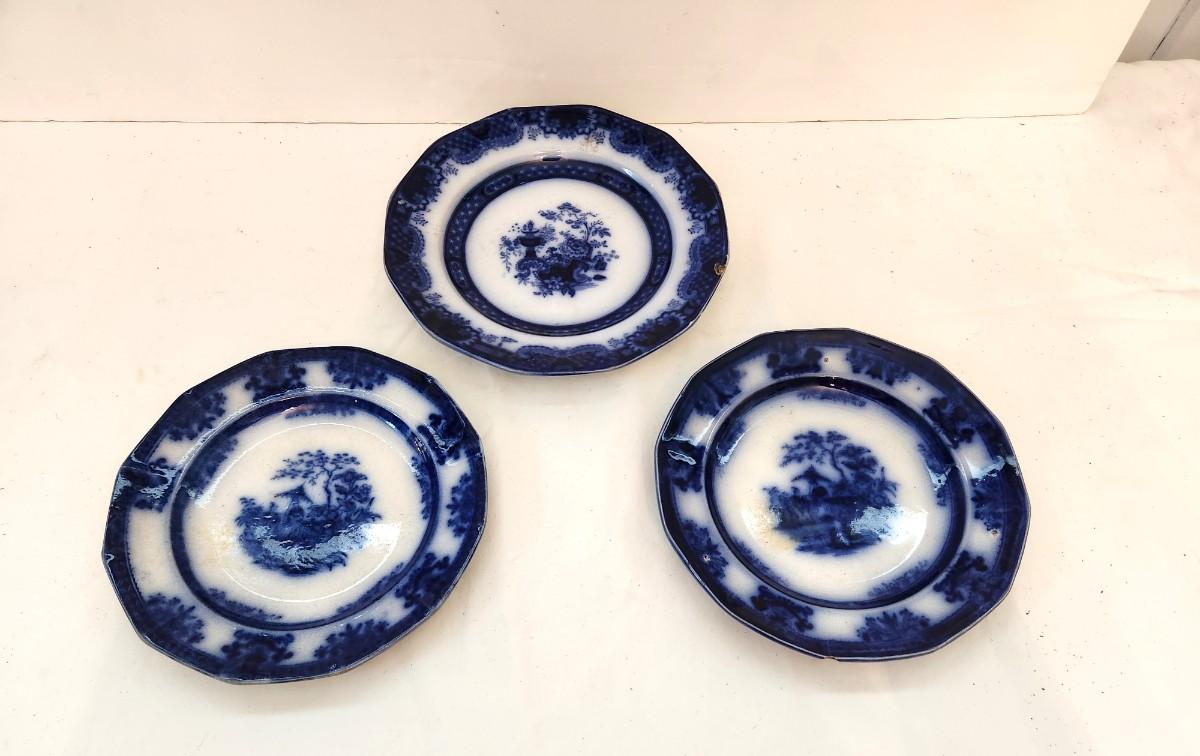 Lot #220  Lot of 3 Antique Flow Blue Plates, ca. 1850