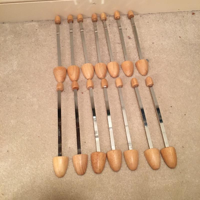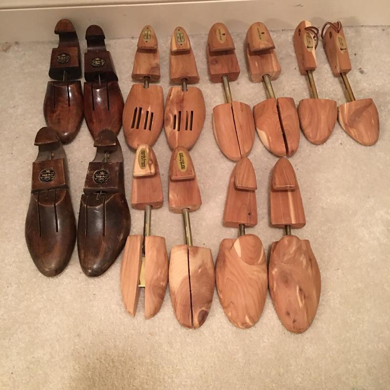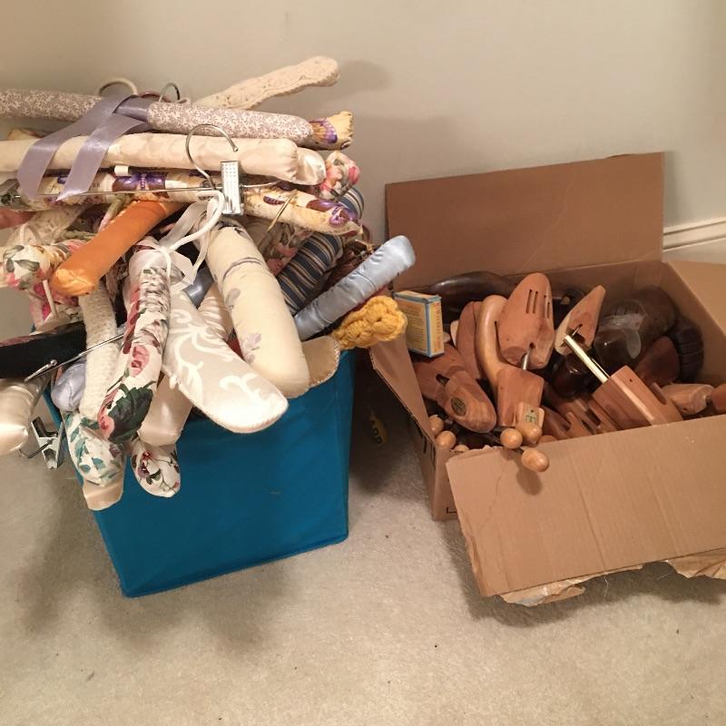 Some great items here to solve your closet storage needs with a good amount of both of wooden shoe trees and padded hangers. Includes seven pair of wooden shoe trees, seven smaller shoe trees, shoe stretcher, and oodles of padded hangers in a variety of fabrics.
