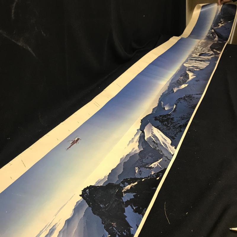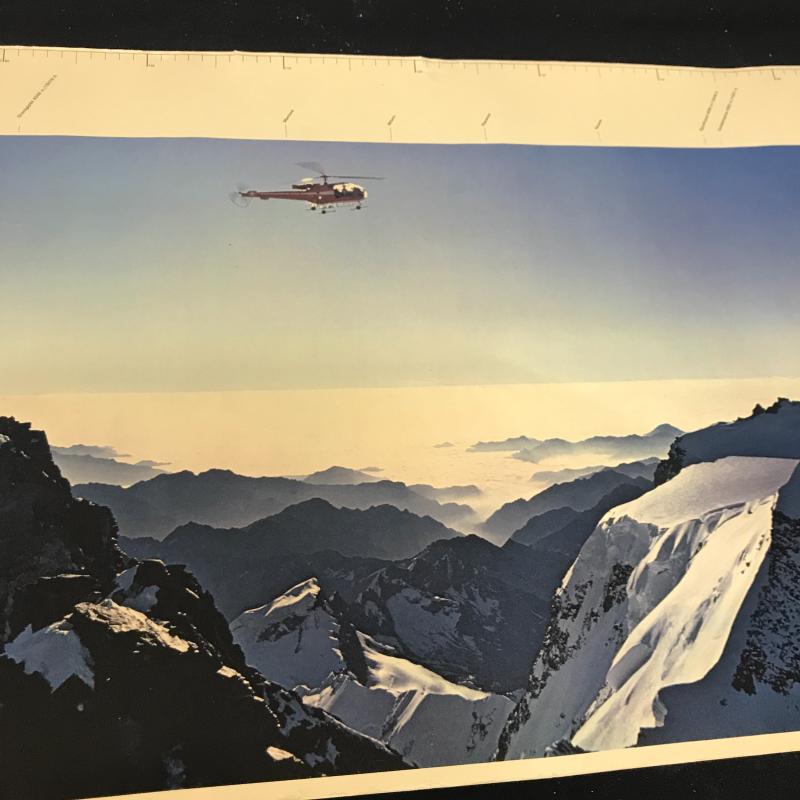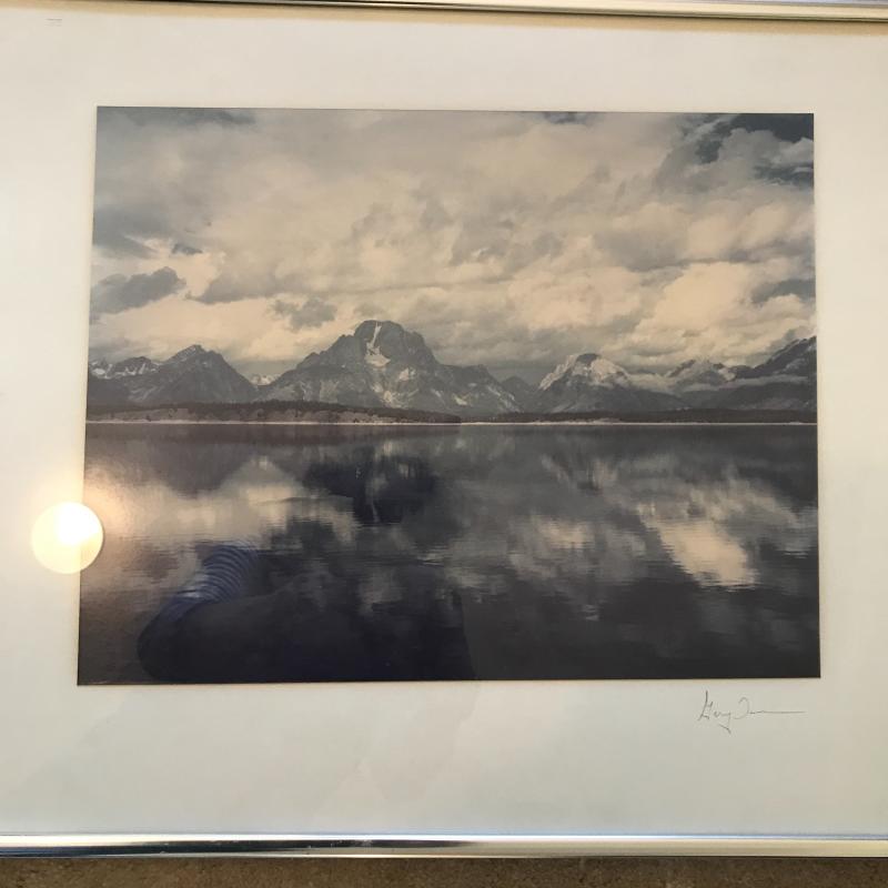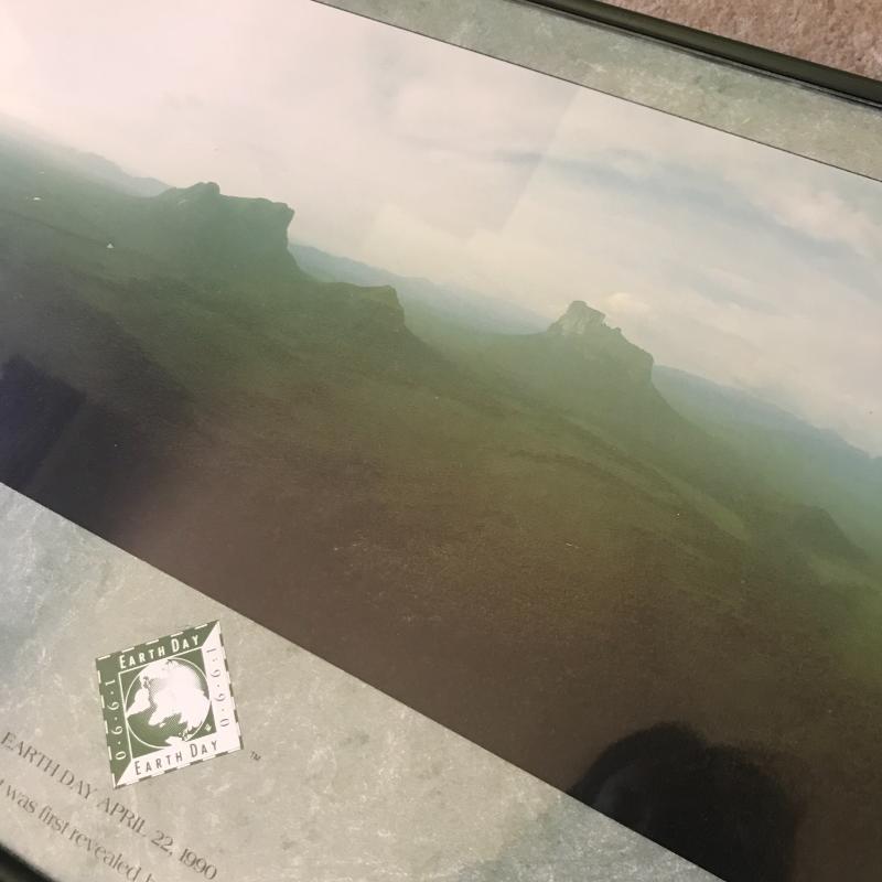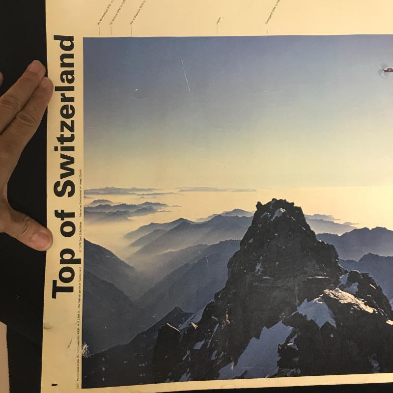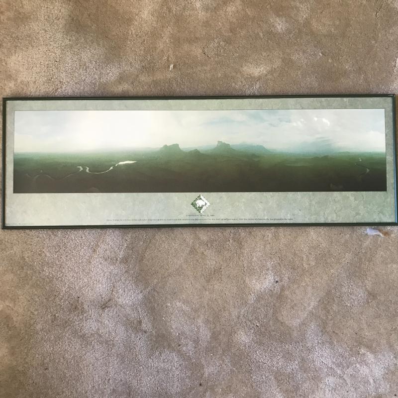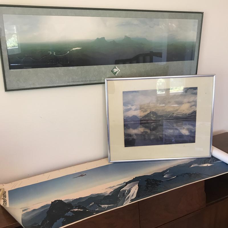 Two framed mountain pictures. Long one is a poster for Earth Day 1990. (38” x 13”) Super long unframed photo poster of Top of Switzerland measures 100” long by 14.5” wide. What a cool poster to put across your wall!! No shipping