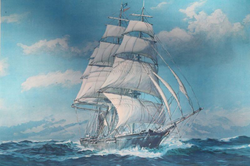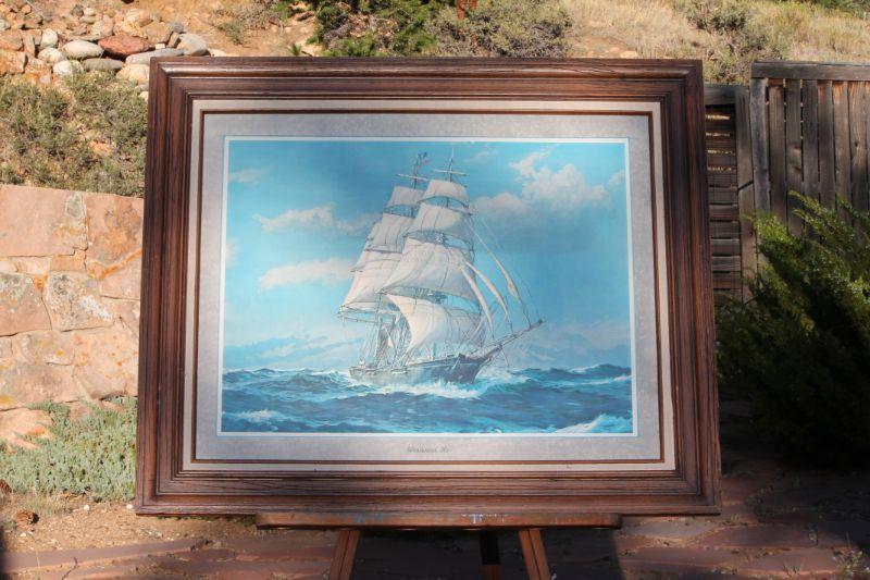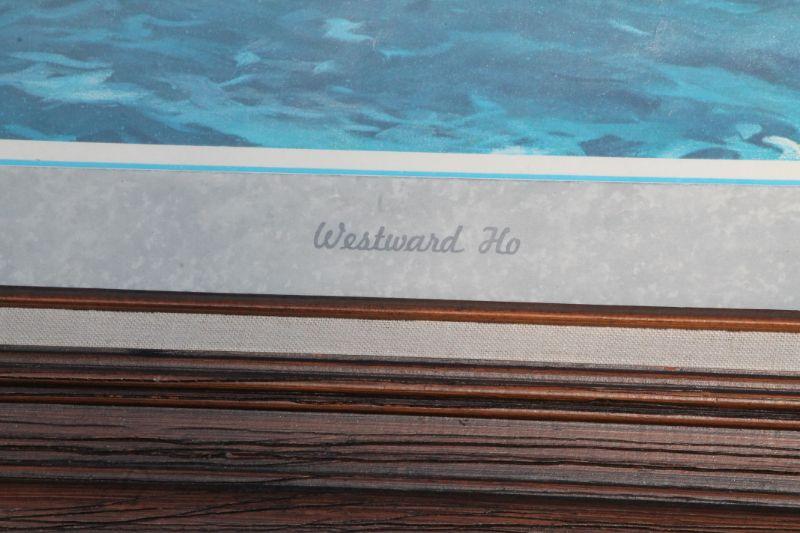 Lot 2-203: Vintage Large Sailboat at Sea "Westward Ho" ORIGINAL Oil Painting Framed Print {37" x 31"}