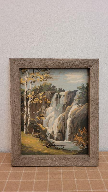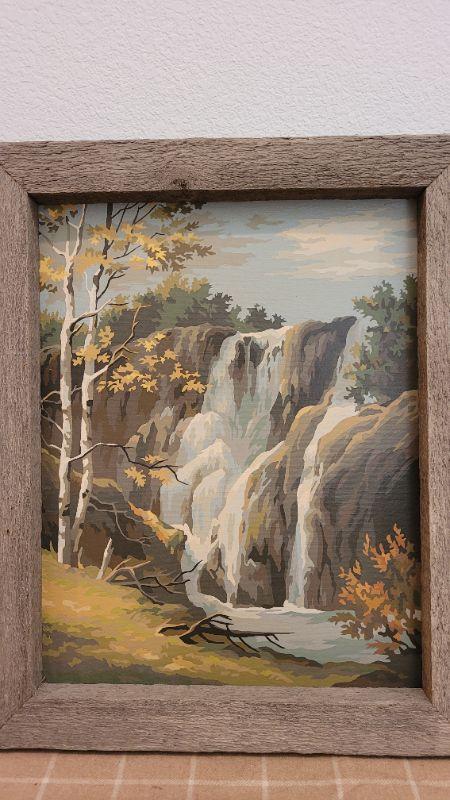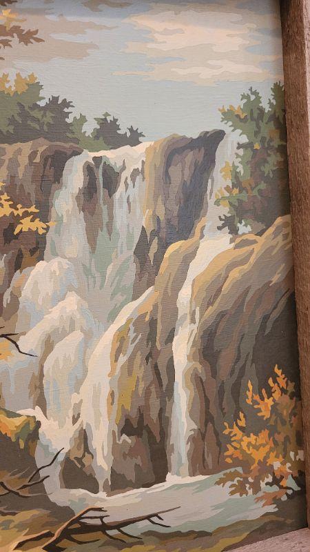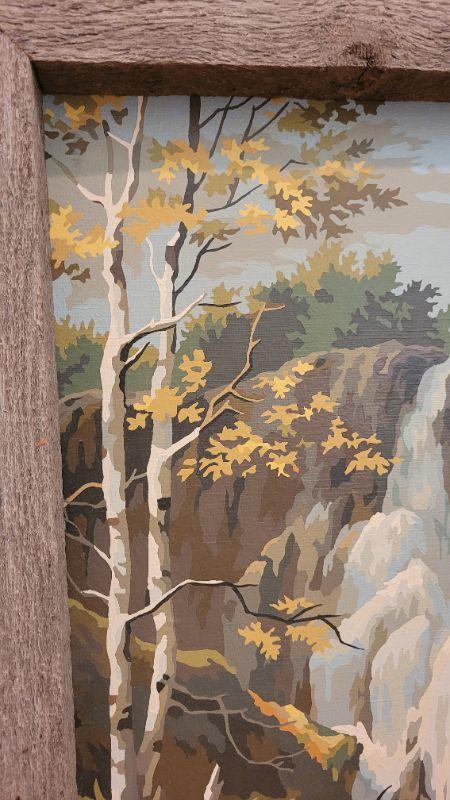 Lot 221: Vintage Framed PAINT BY NUMBERS Origonal Painting Waterfall Scene