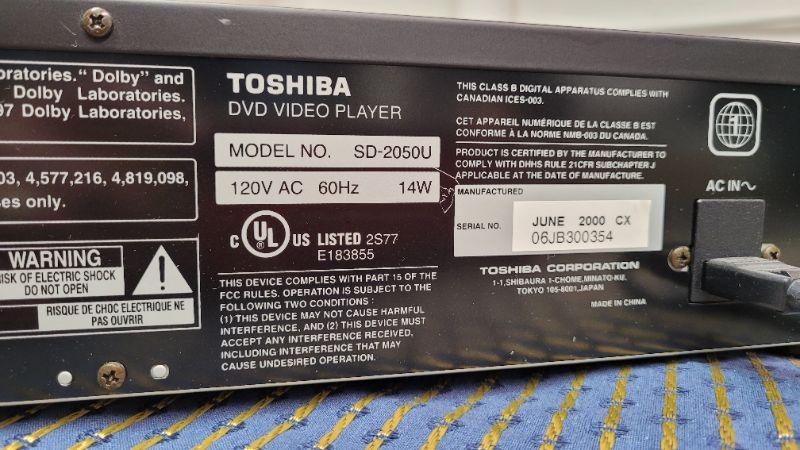 Lot 1225: TOSHIBA DVD Video Player SD-2050