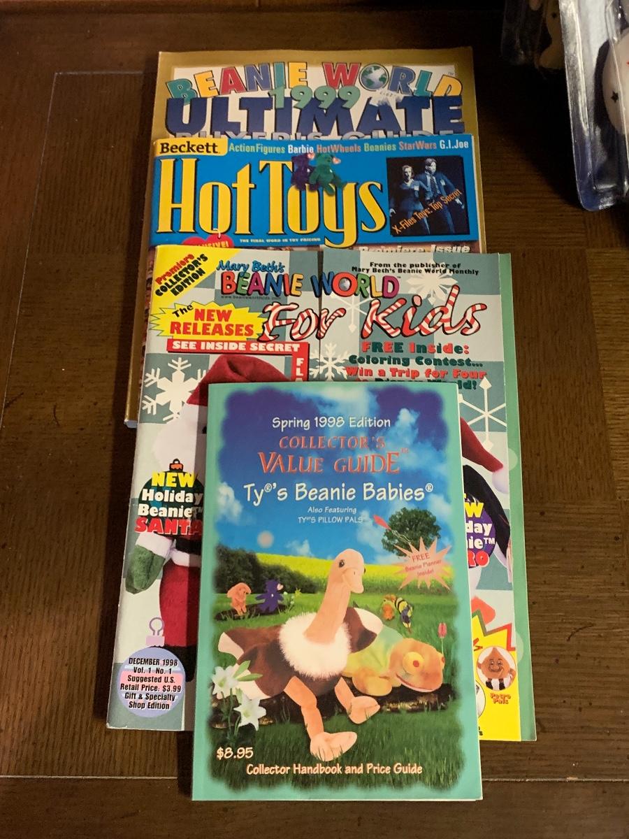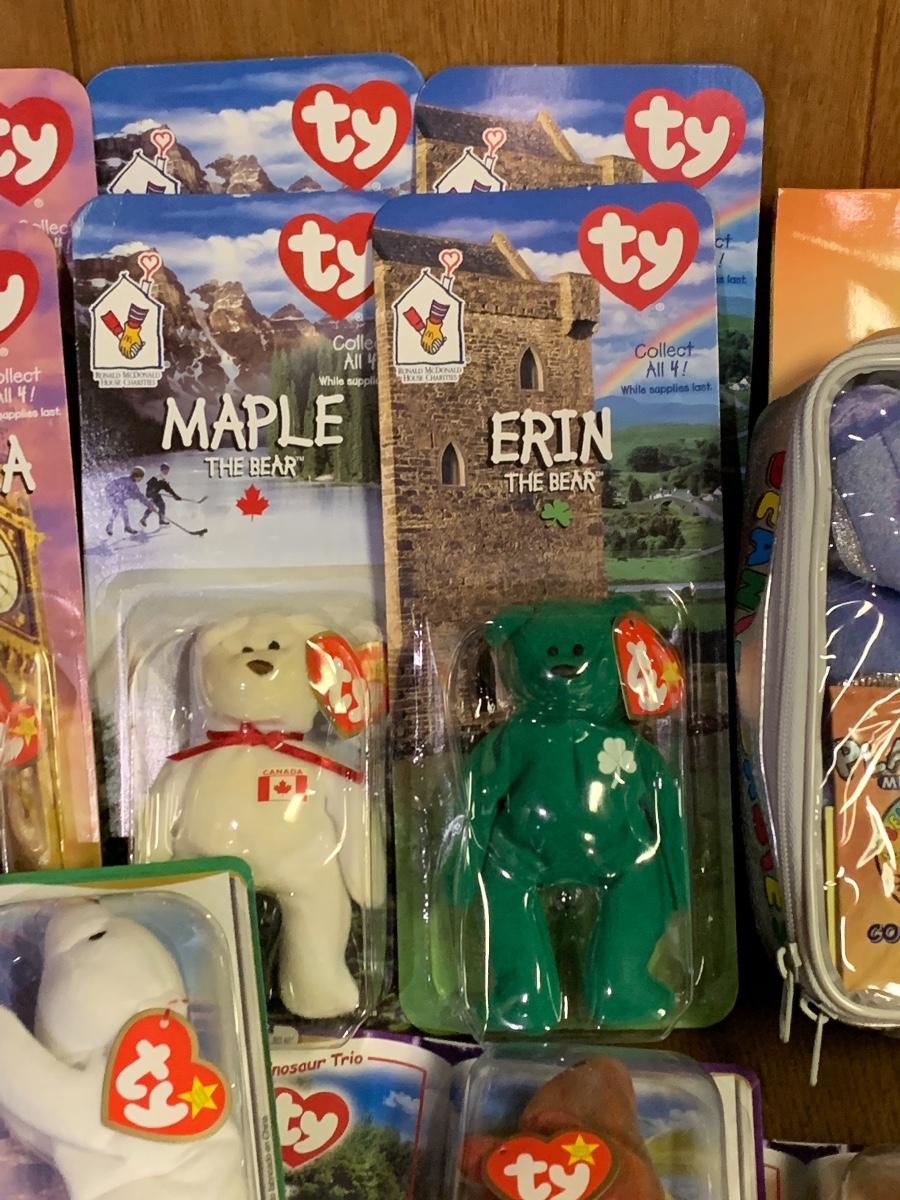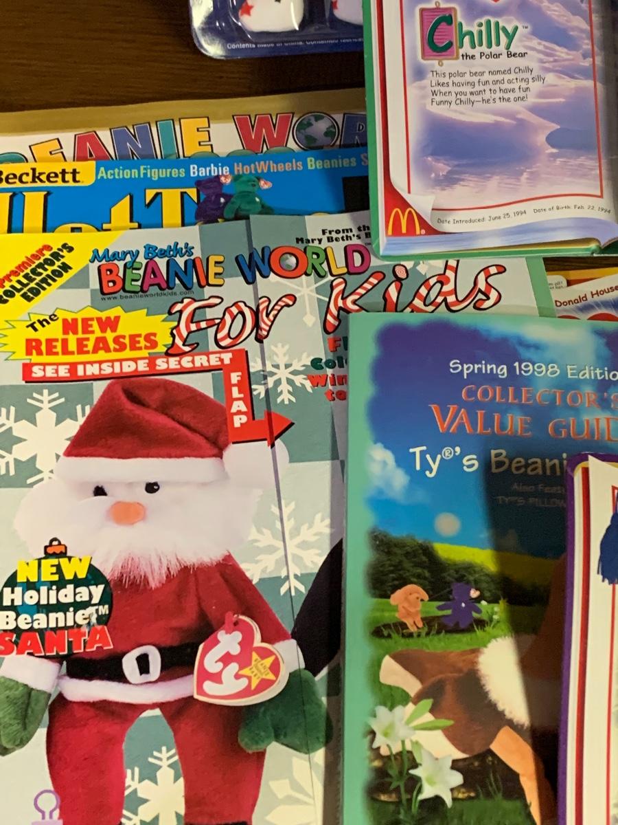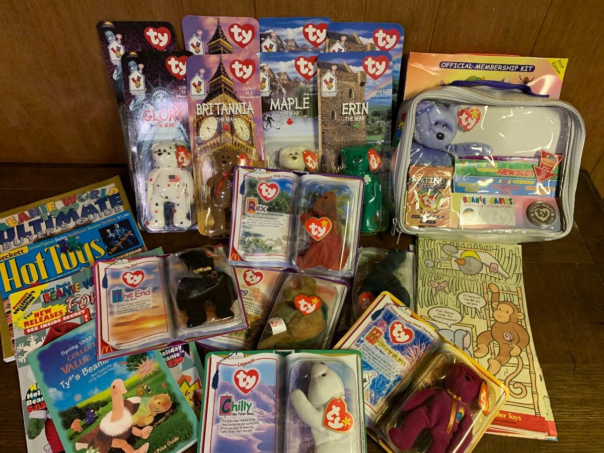 Collectible McDonald Beanie Babies along with magazines, original paper Happy Meal Bags, Official Fan Club Membership Kit (this has been opened -may or may not be complete).
