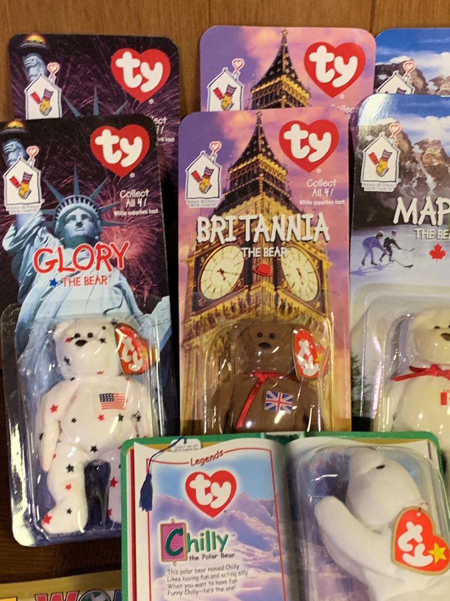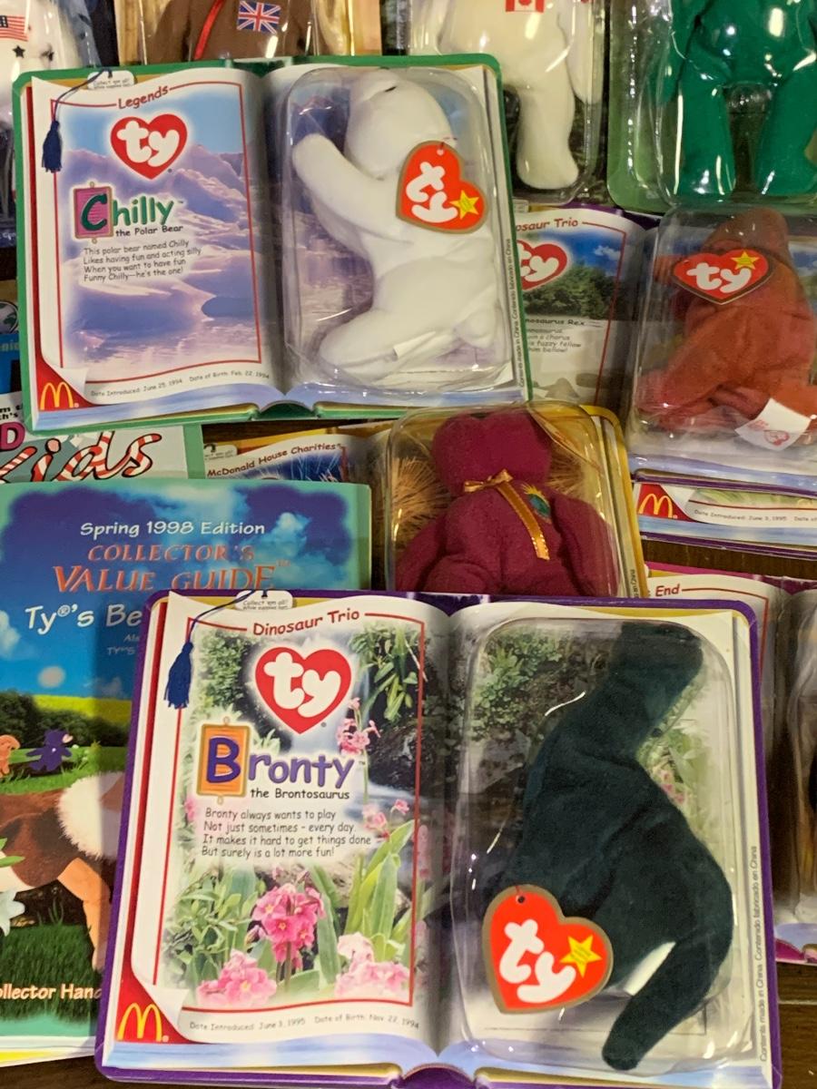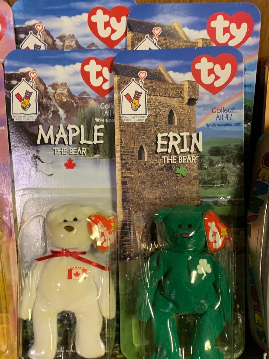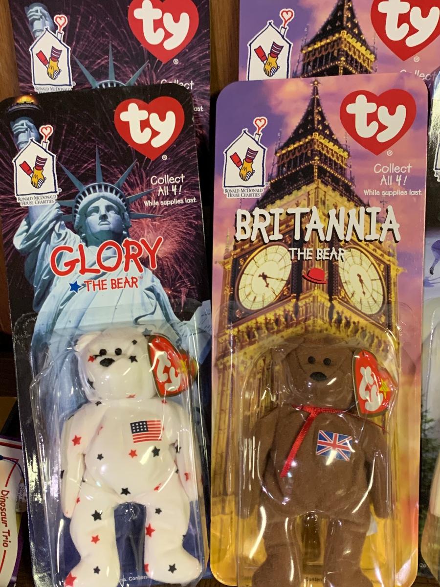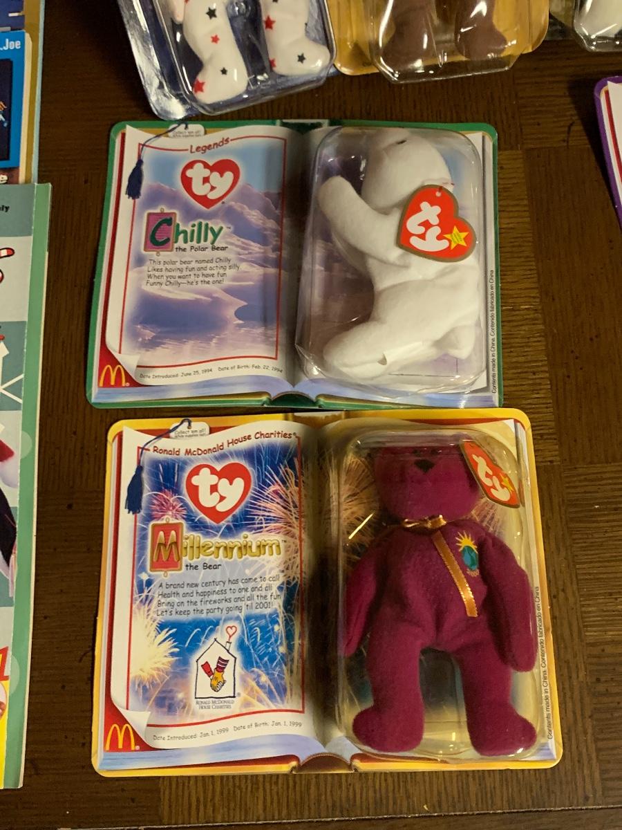 Collectible McDonald Beanie Babies along with magazines, original paper Happy Meal Bags, Official Fan Club Membership Kit (this has been opened -may or may not be complete).