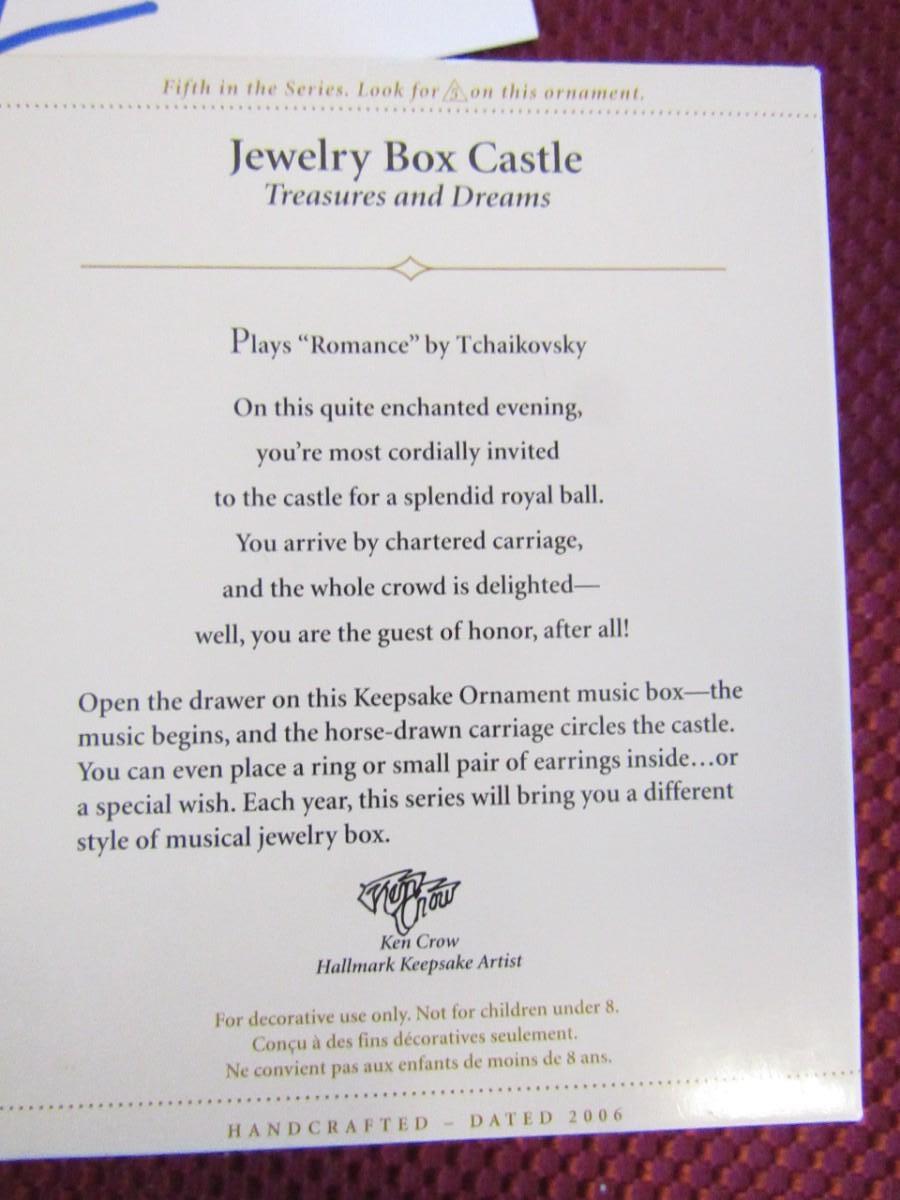 HALLMARK KEEPSAKE ORNAMENT PLAYS "ROMANCE" WHEN YOU OPEN THE DRAWER AND THE HORSE-DRAWN CARRIAGE CIRCLES THE CASTLE