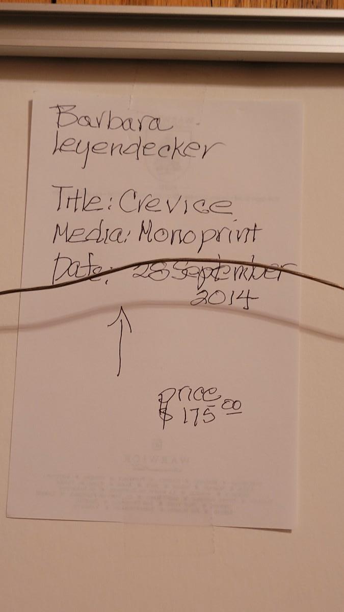 Lot 221: Original Monoprint by BARBARA LEYENDECKER 'Crevice'