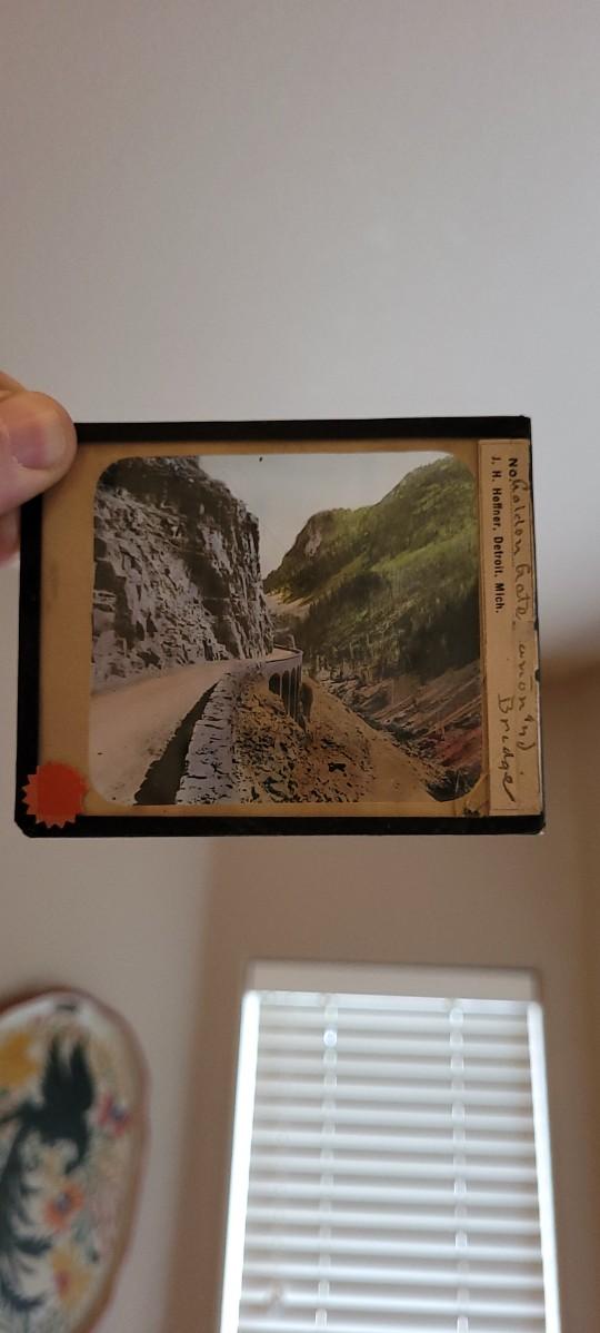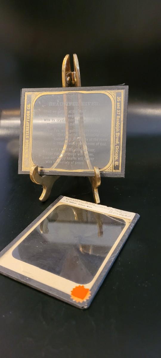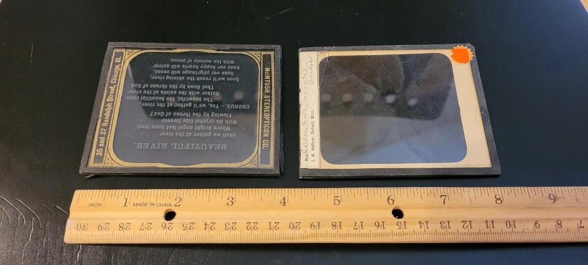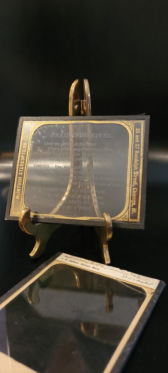 Both Slides are intact but the slide of the Golden Gate Bridge does show some cracking. Both of these are hard to find artifacts of the Stereo Opticon Viewers produced by McIntosh.