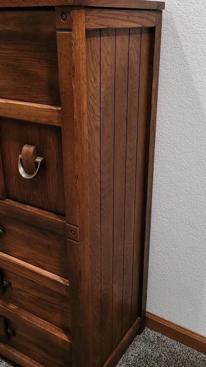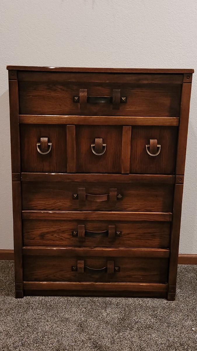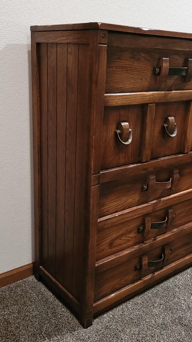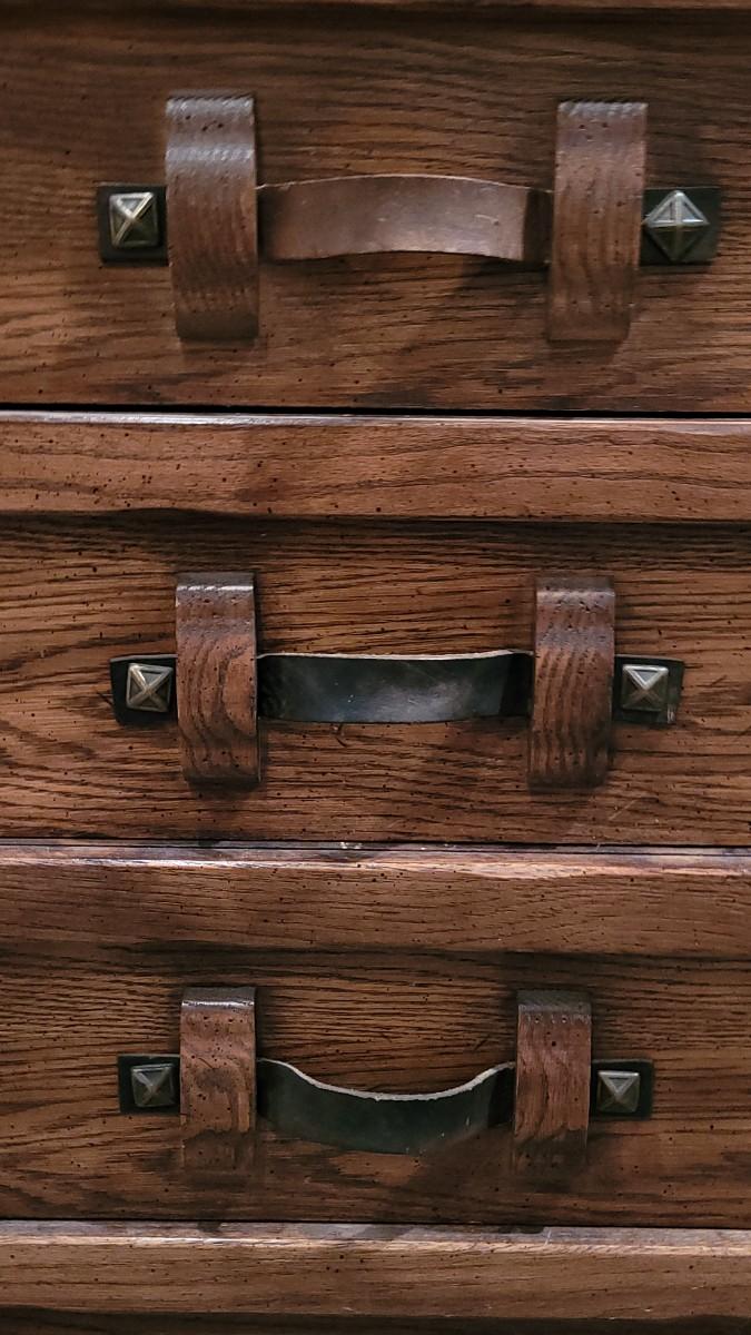 Lot 221: Vintage Mid Century Leather Top & Handle Dresser