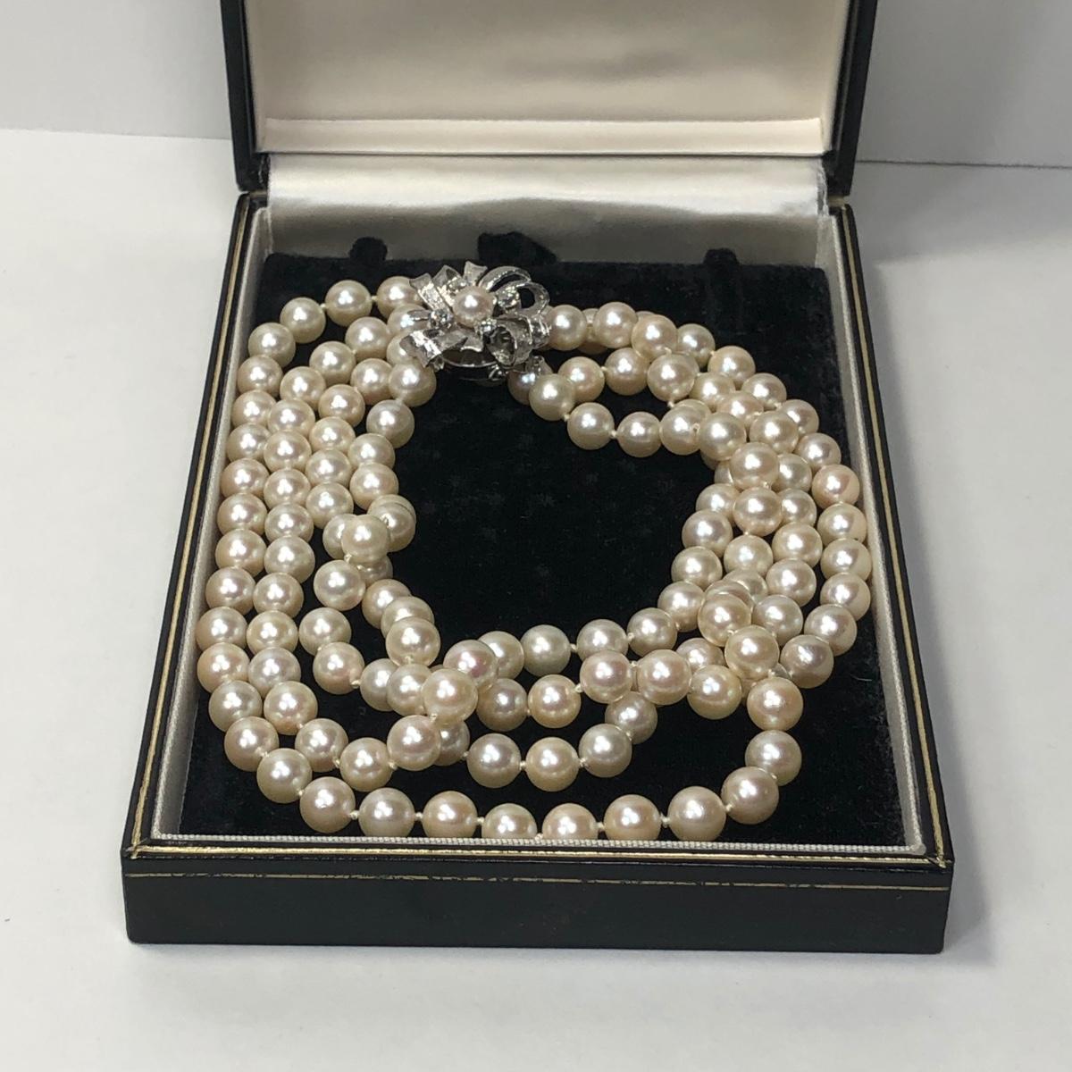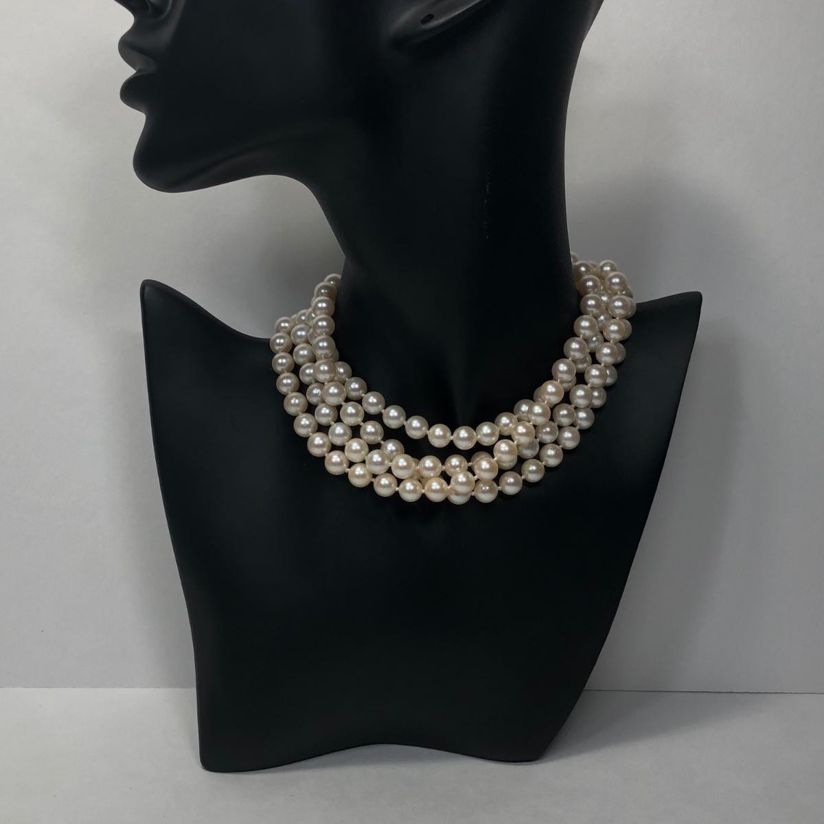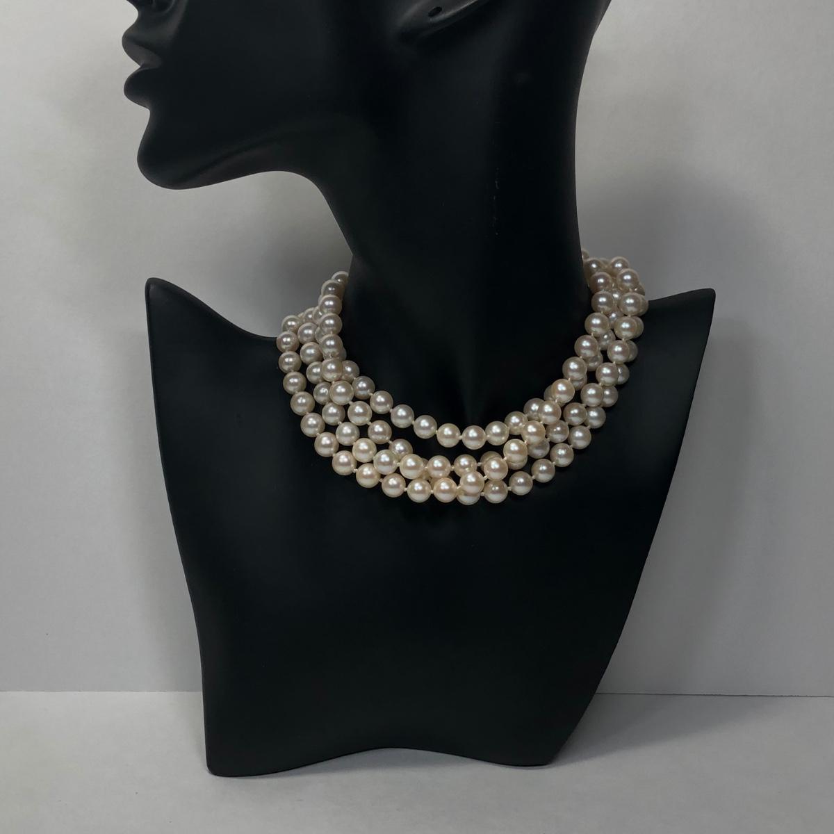 LOT 221: 24" Double Strand Glass Faux Pearl Necklace w/ Beautiful Clasp