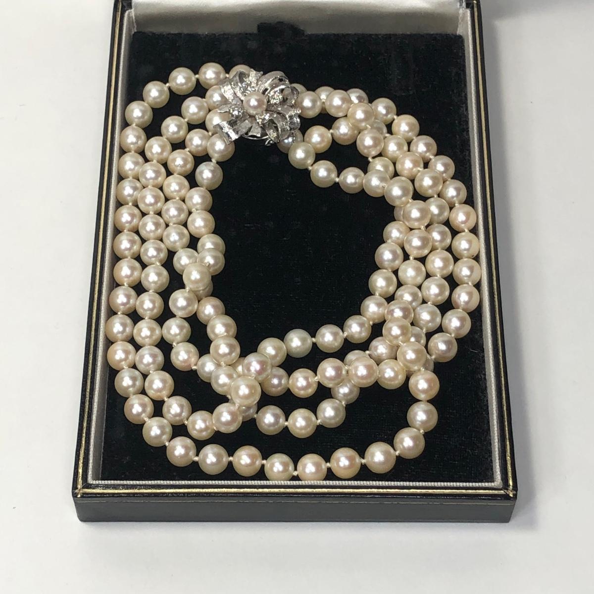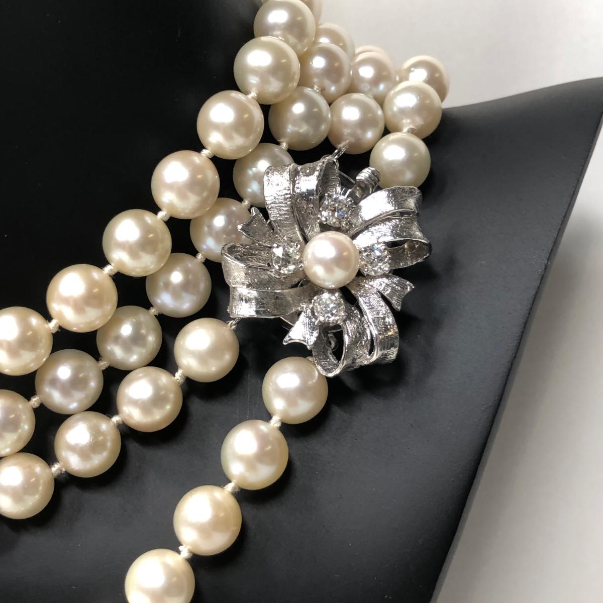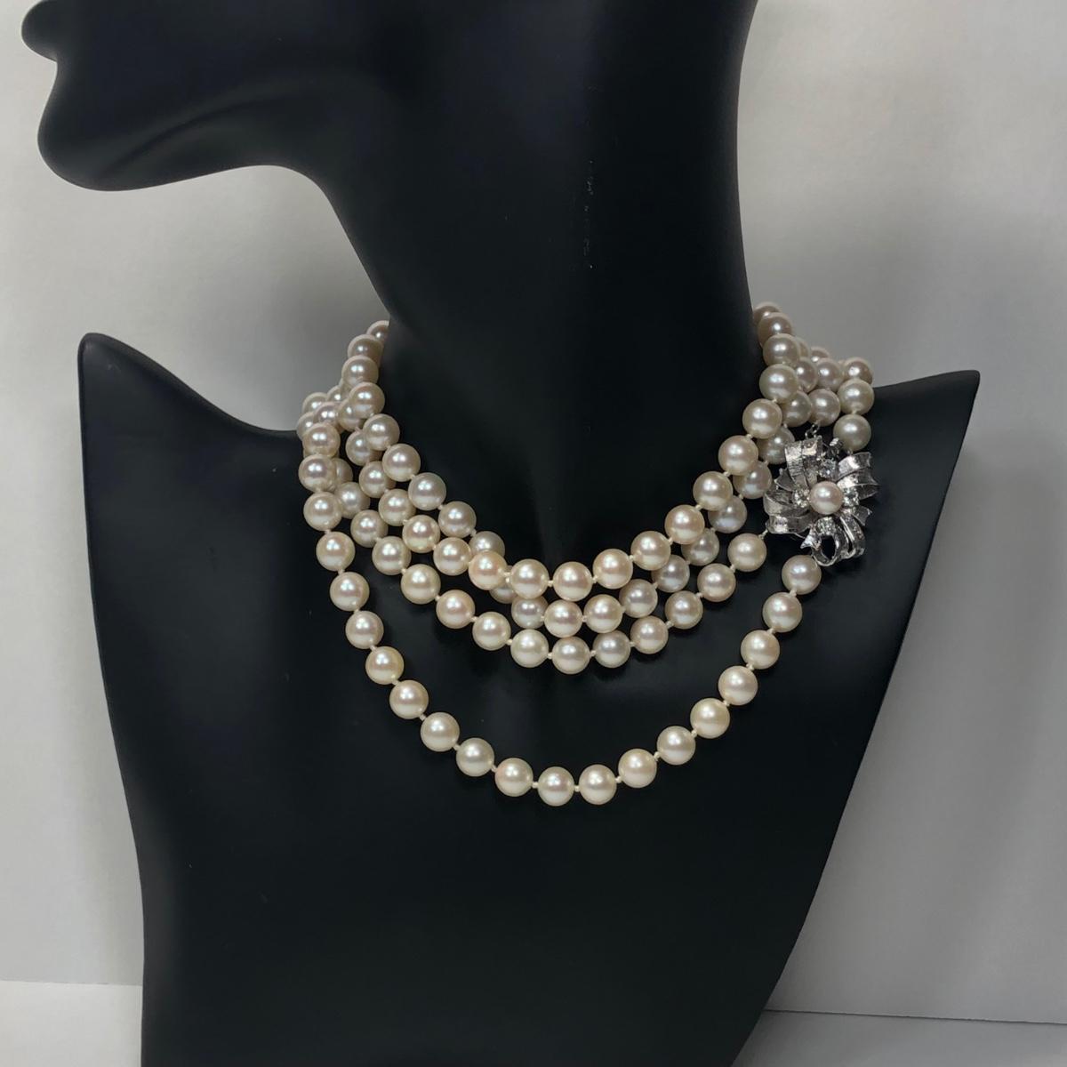 LOT 221: 24" Double Strand Glass Faux Pearl Necklace w/ Beautiful Clasp