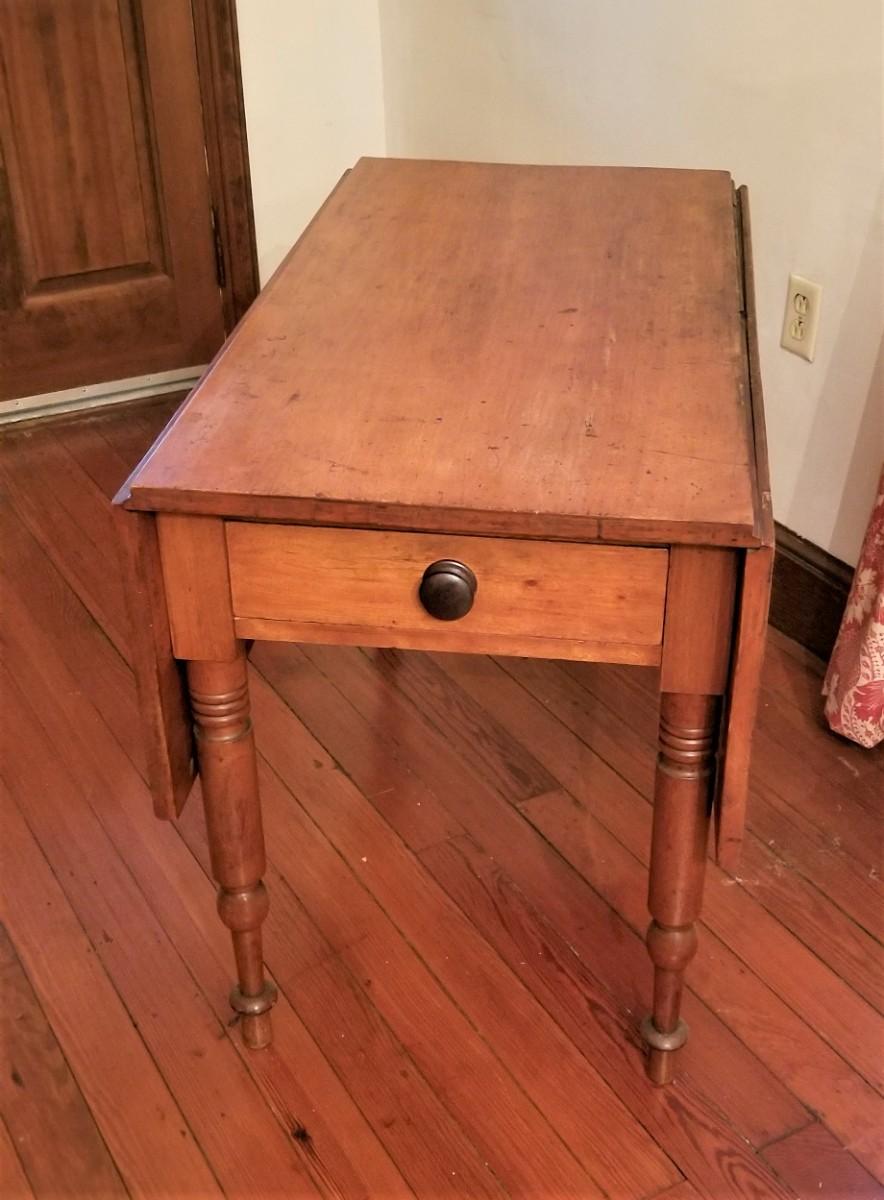 Lot #221  Antique Primitive Drop Leaf Table w/drawer