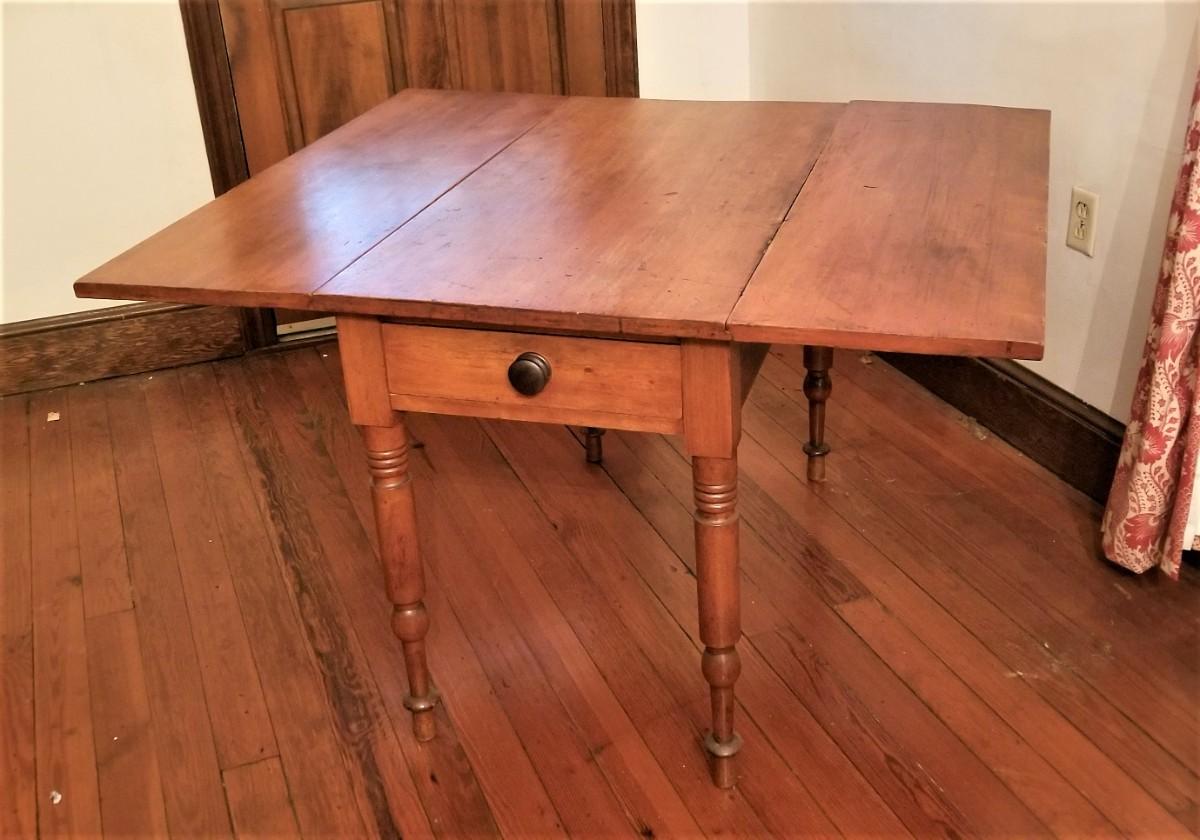 Lot #221 Antique Primitive Drop Leaf Table w/drawer