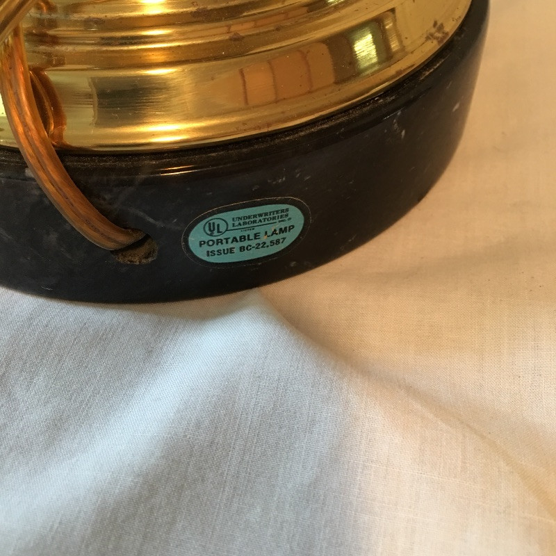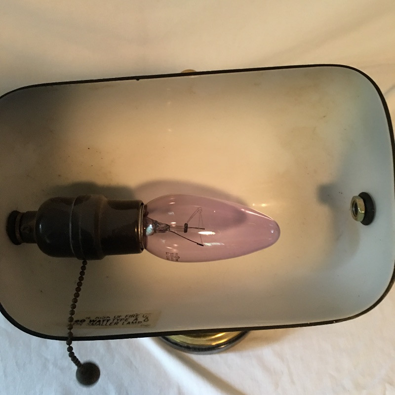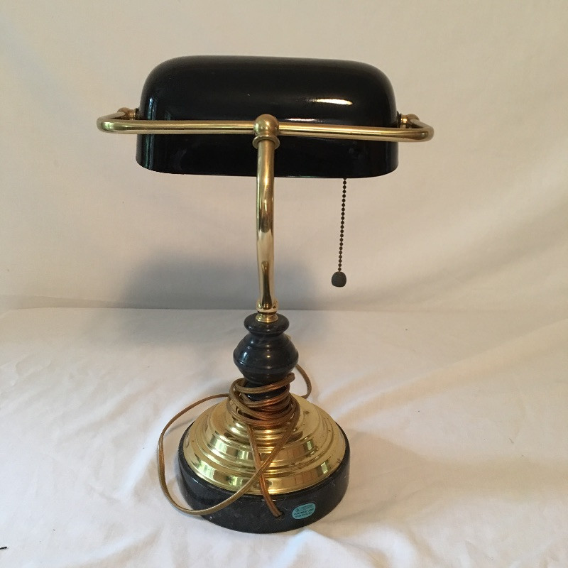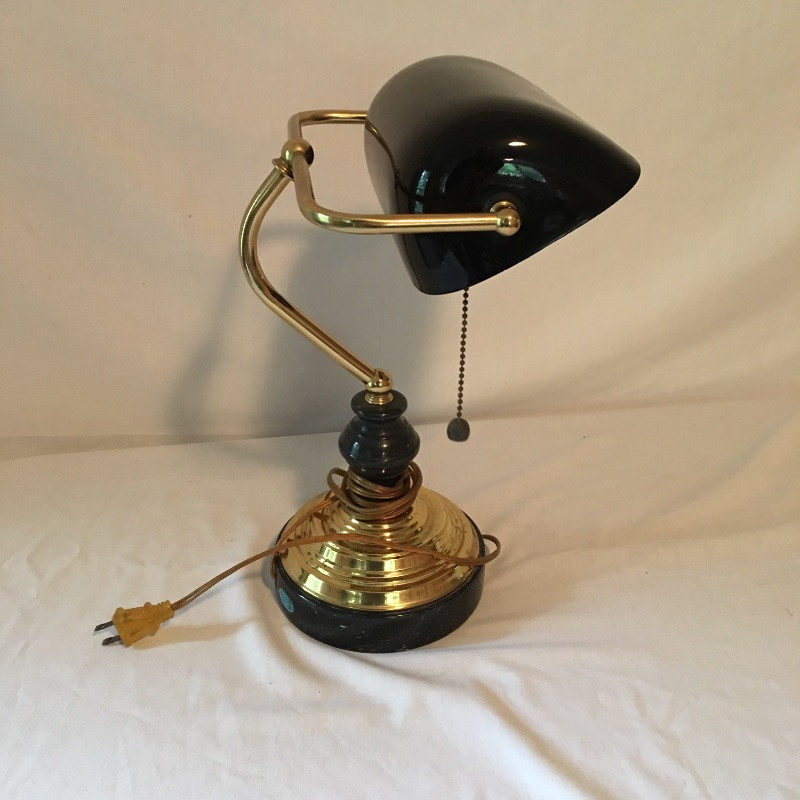 Bankers Lamp with brass and what appears to be stone base. Light up your office with this nostalgic lamp.