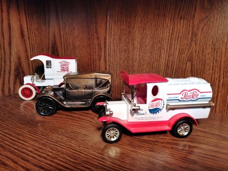 THREE CAR BANKS. PEPSI, FORT MORGAN BANK, AND A NEW RAYMER BANK