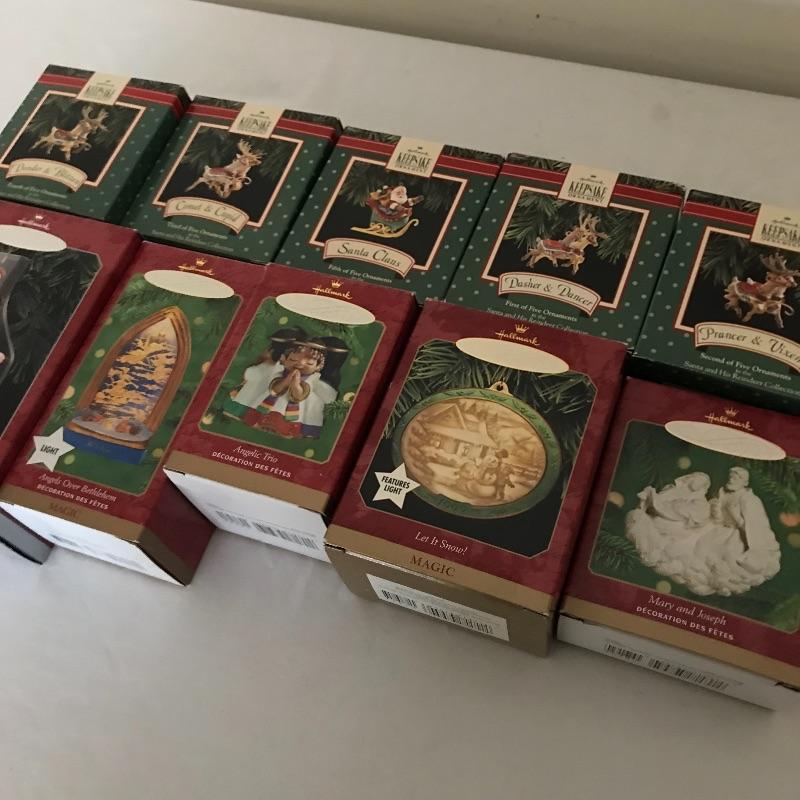 This sweet Christmas Lot includes ten collectible ornaments that appear to be new (in their boxes), rustic metal star decor, a Christmas tree candle holder, and a large San Nicolás Pipka figurine, new in box. Figurine is approx. 10.5” tall and numbered 1319/3600. See pics. Local pickup only.
