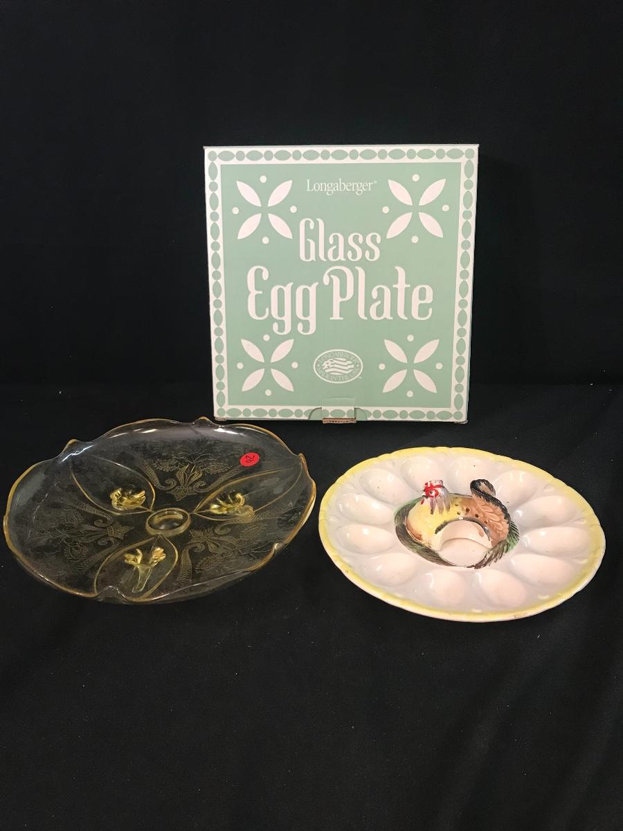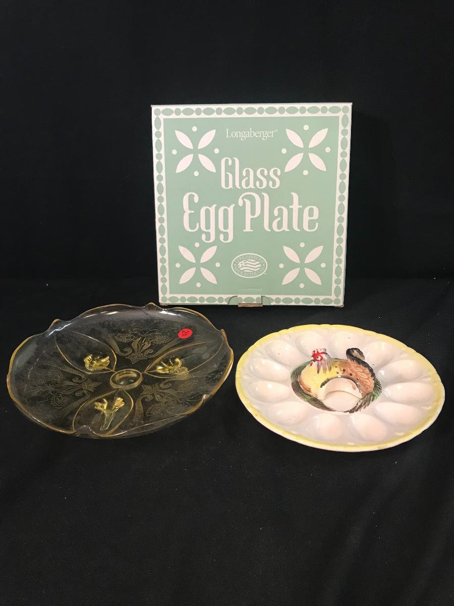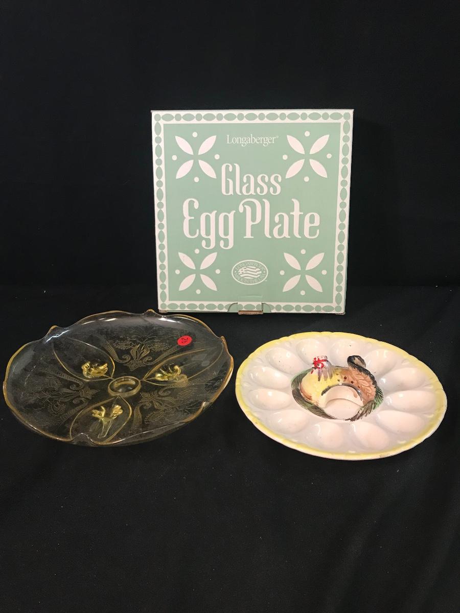 Lot 221: Platters - Depression Glass, Longaberger Egg Plate & More