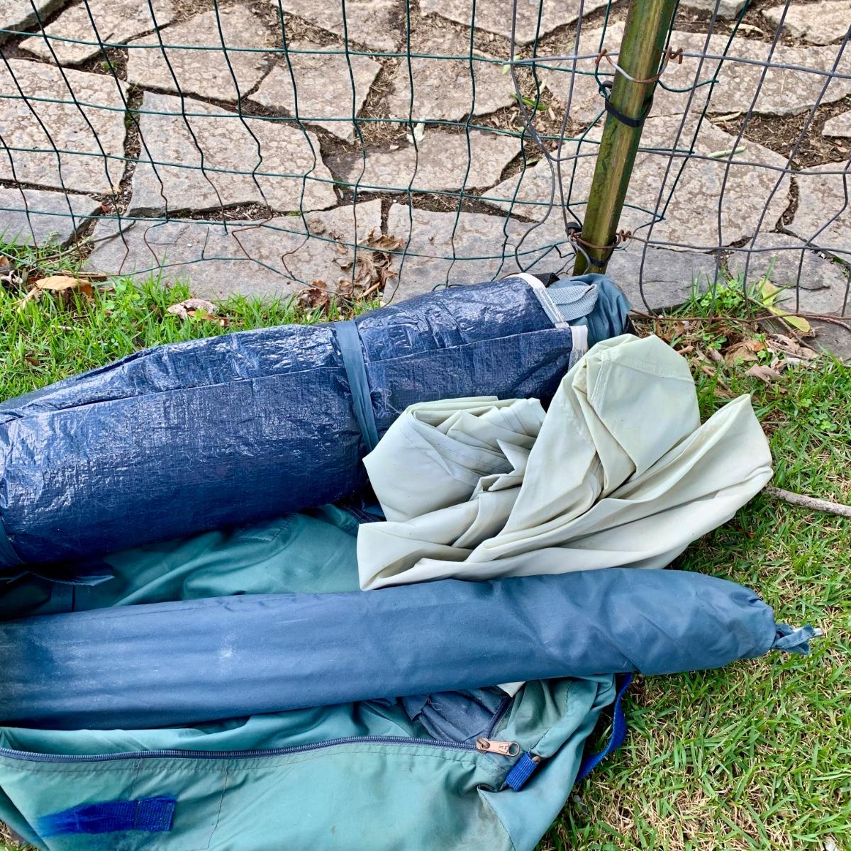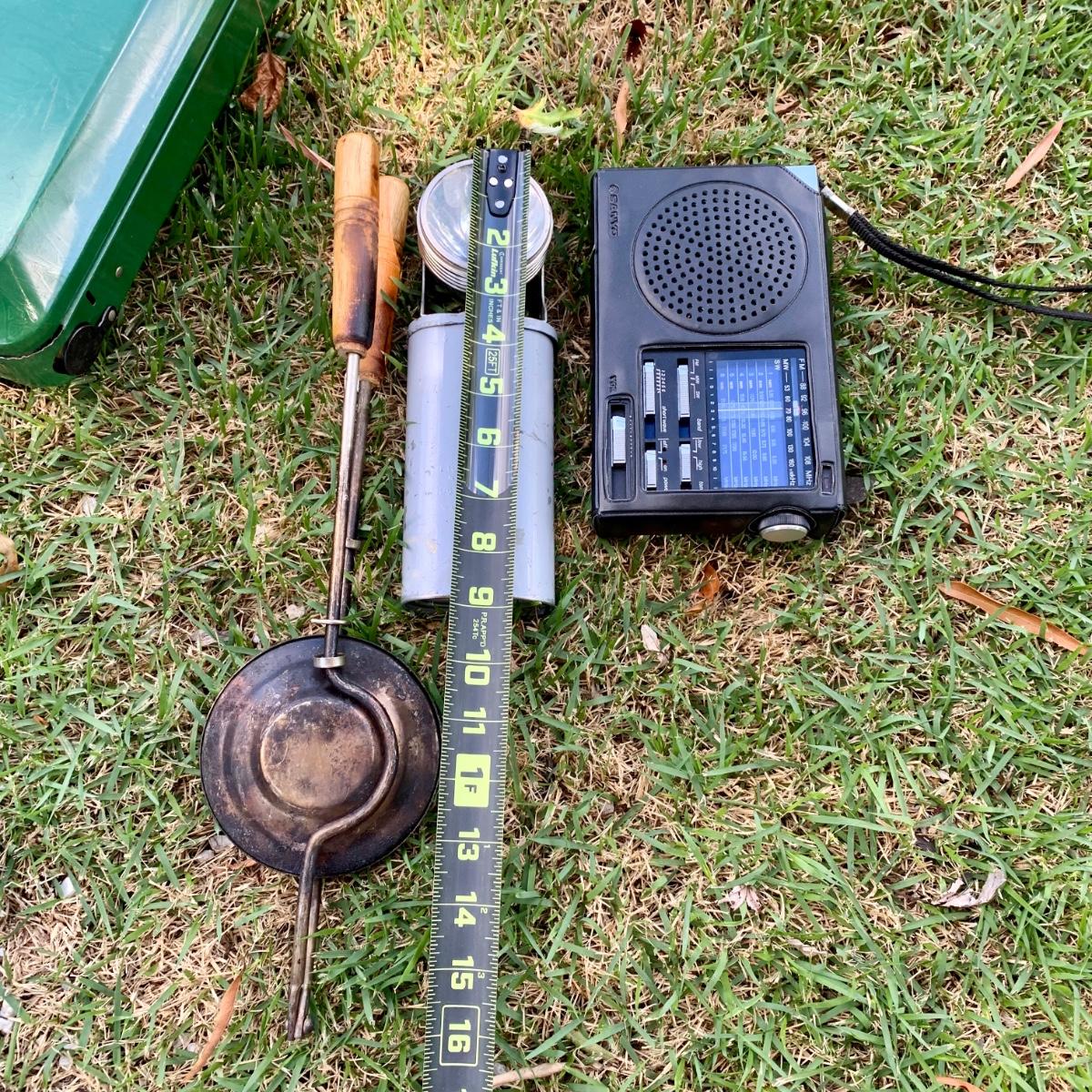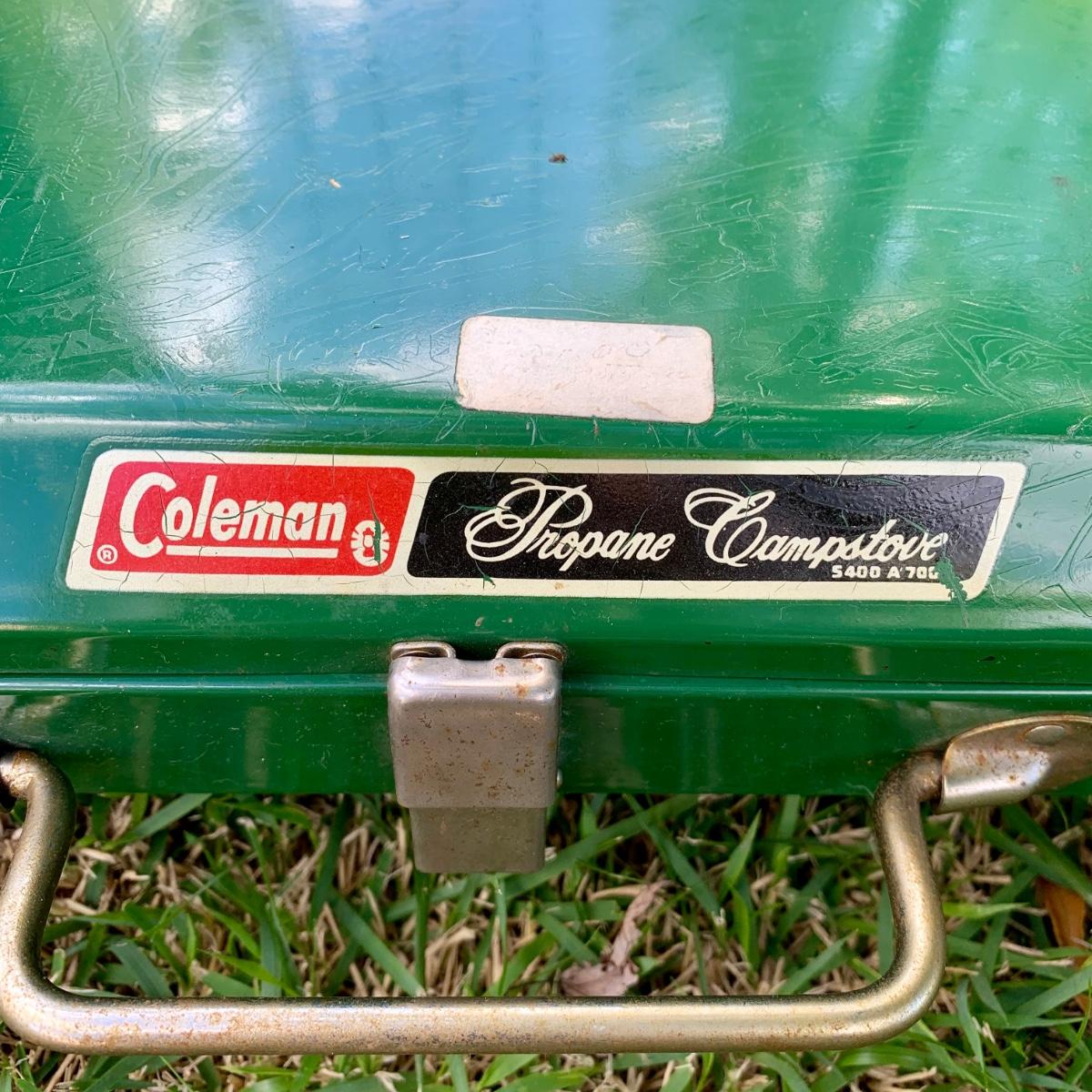 LOT 221 L: Vintage Camping Collection: Coleman Propane Campstove, Sanyo Radio Model #RP8900, Light-Stick Model #2105-4, Academy Broadway Tent, & More