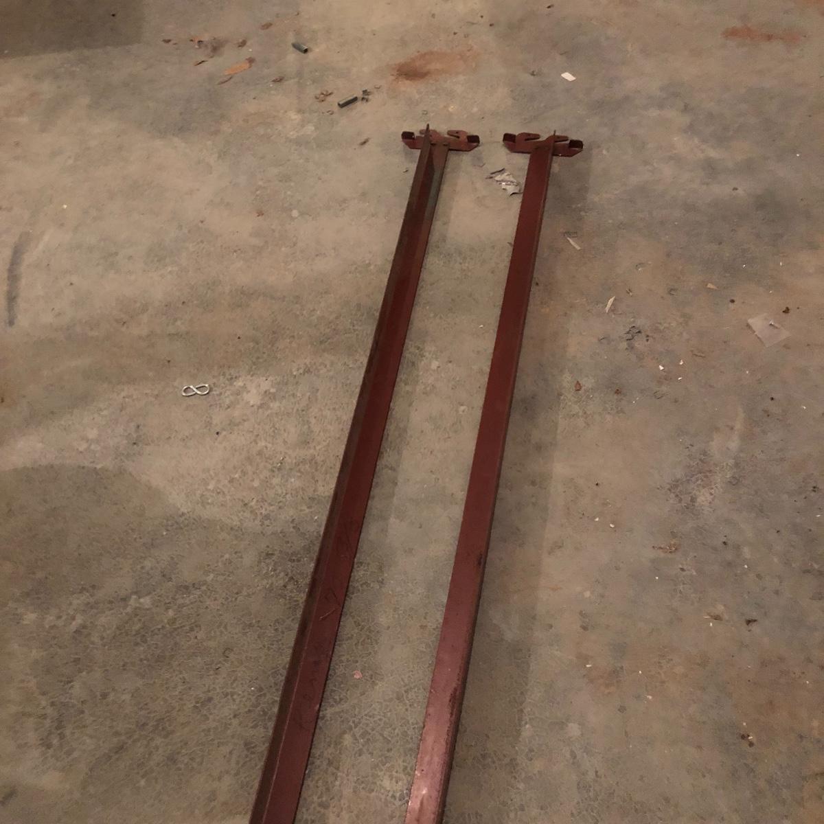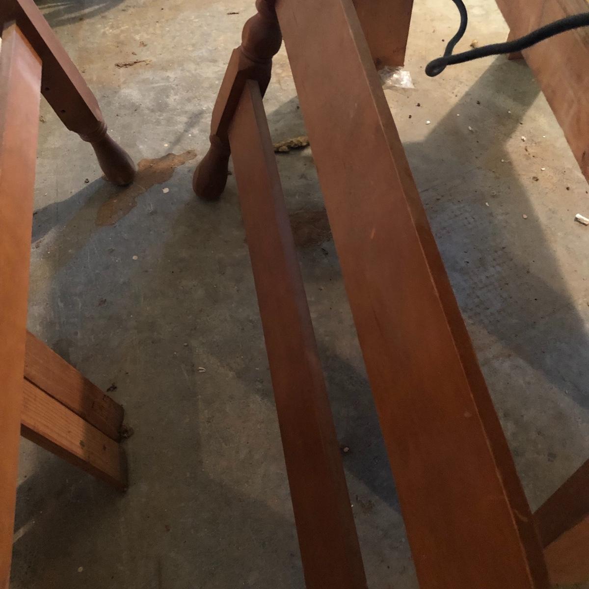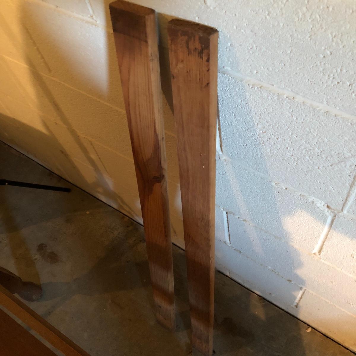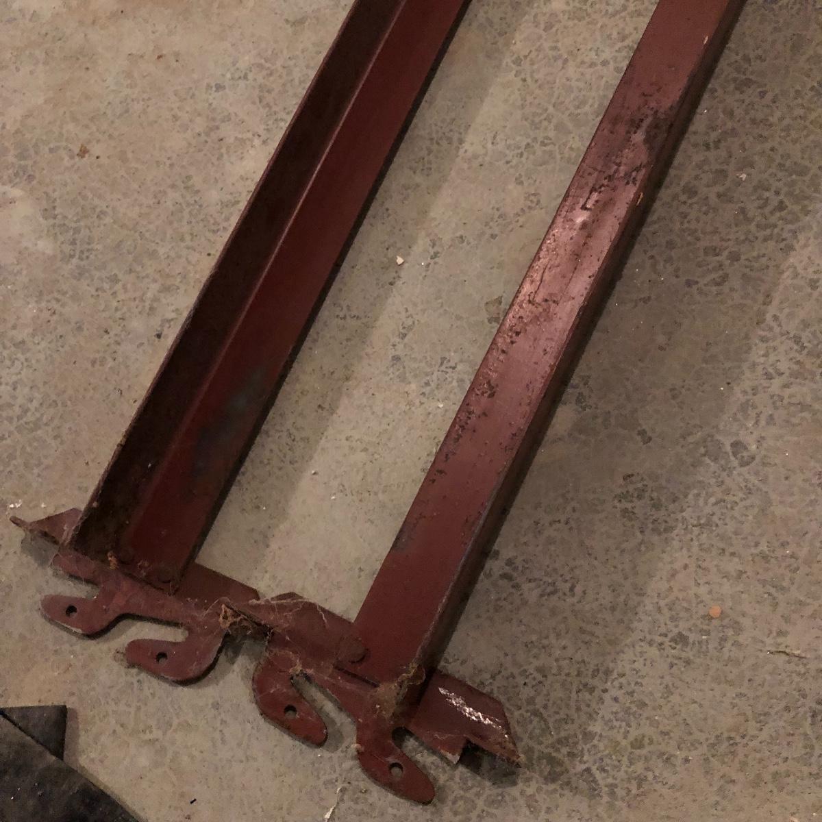 This lot contains two wooden pieces, a headboard and footboard, two wooden rails and two metal sides. The headboard and footboard measure approximately 41” x 2.5” x 36” (headboard) 27” (footboard). The metal rails are 78” long. Local pick up only.