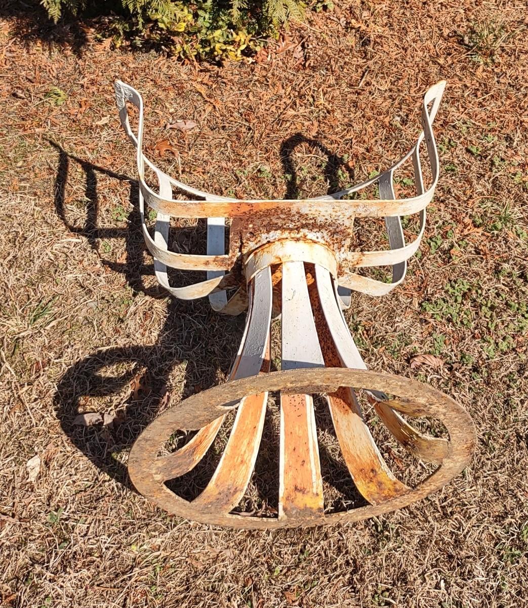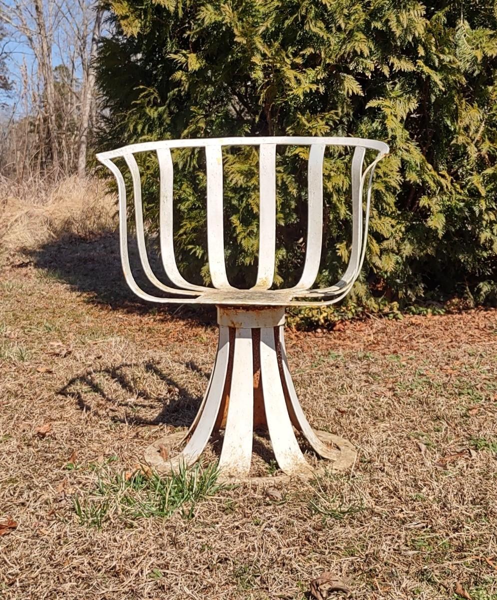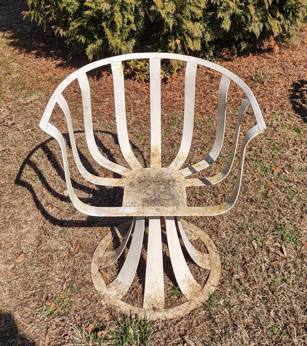 Awesomely unique metal chairs (25×29) for indoor or outdoor use. They just need a little clean up and paint.