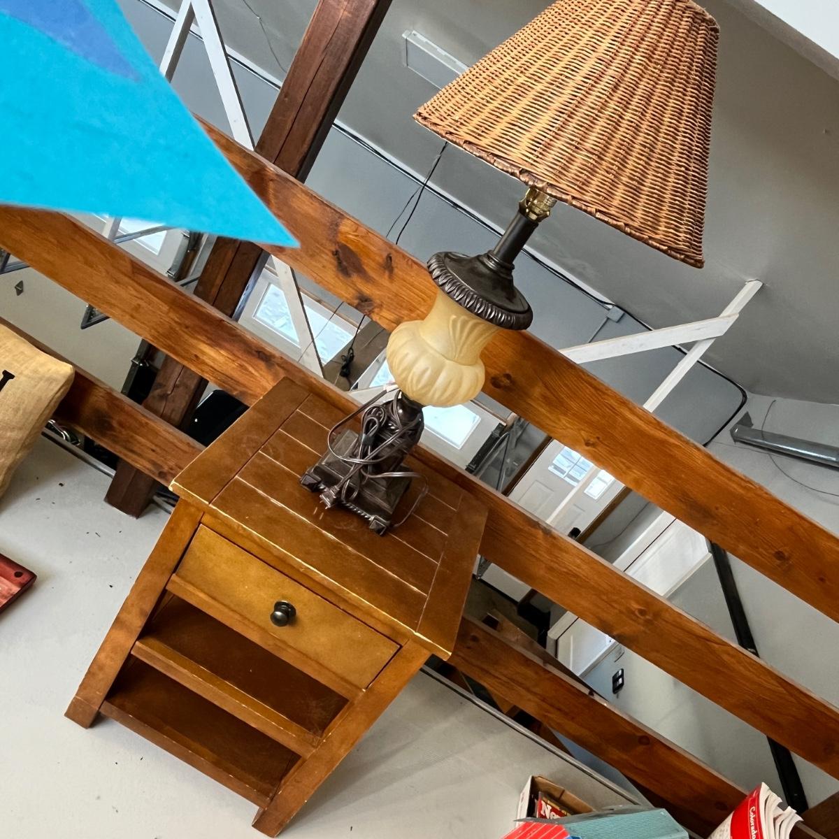 Lot 222 Lamp with wicker shade and wooden nightstand