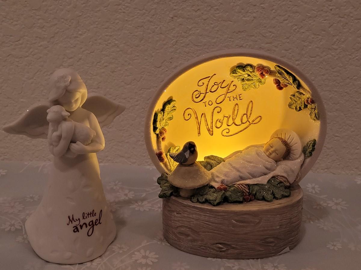 Lot 222: Hallmark light Up Joy to the World and Angel with Lamb