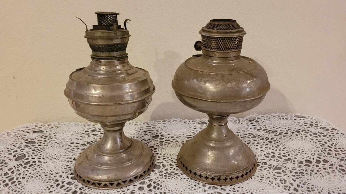 Lot 192: (2) Antique Kerosene Metal Lamps