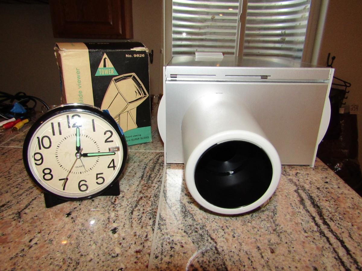 DESIGN MASTER PROJECTOR, WIND UP ALARM CLOCK AND LIGHTED SLIDE VIEWER