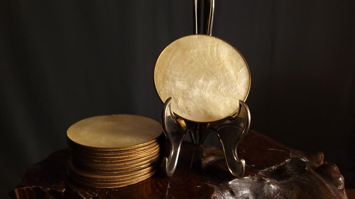Lot 222: Vintage Set of (12) Handcrafted 3.5" Abalone Shell Coasters