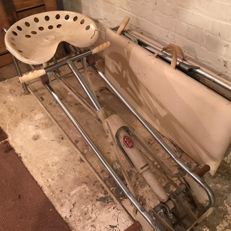 Lot includes fun old CCM exercise machine that slides like a rowing machine. Approx. 55” long x 21” wide x 35” tall when extended. Lot also includes what appears to be a weight or exercise bench that sits on an incline and is approx 72” when extended. Local pickup only. Please bring help to move up flight of stairs.