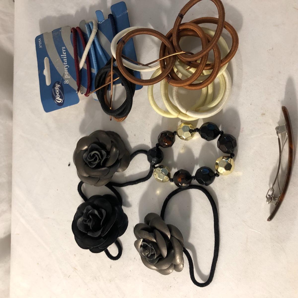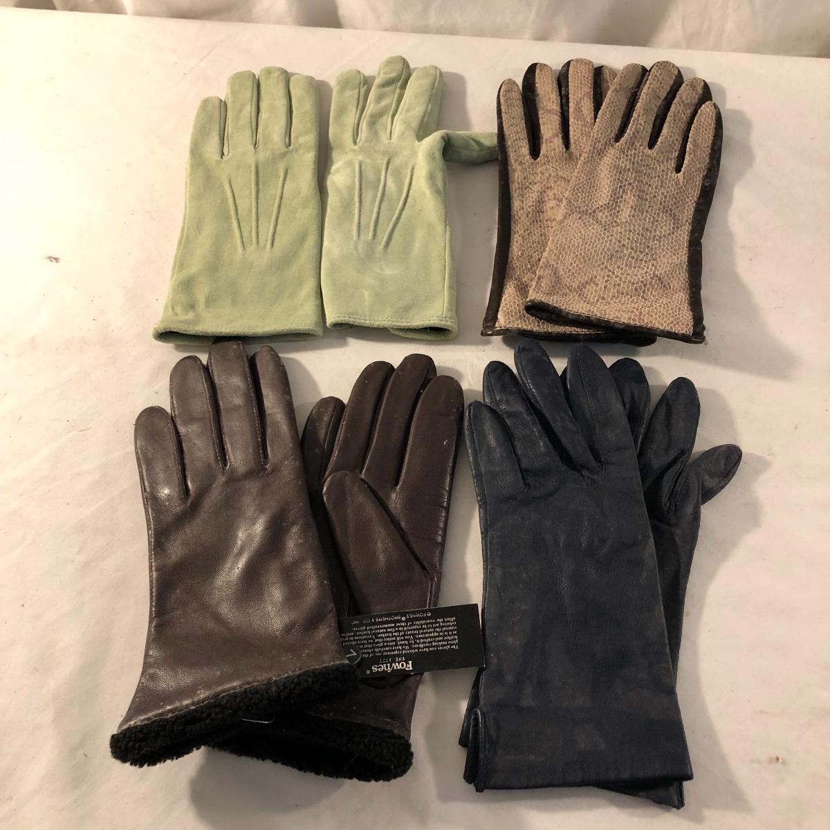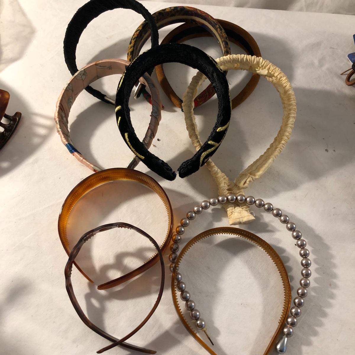 Lot includes a selection of size small gloves in a variety of materials that includes leather, cloth, suede and more. Also includes a assortment of hair accessories including bands, clips and ties in plastic, metal and cloth. Last but not least is a nice selection of handkerchiefs. Shipping Available.