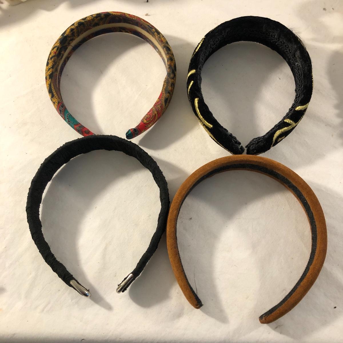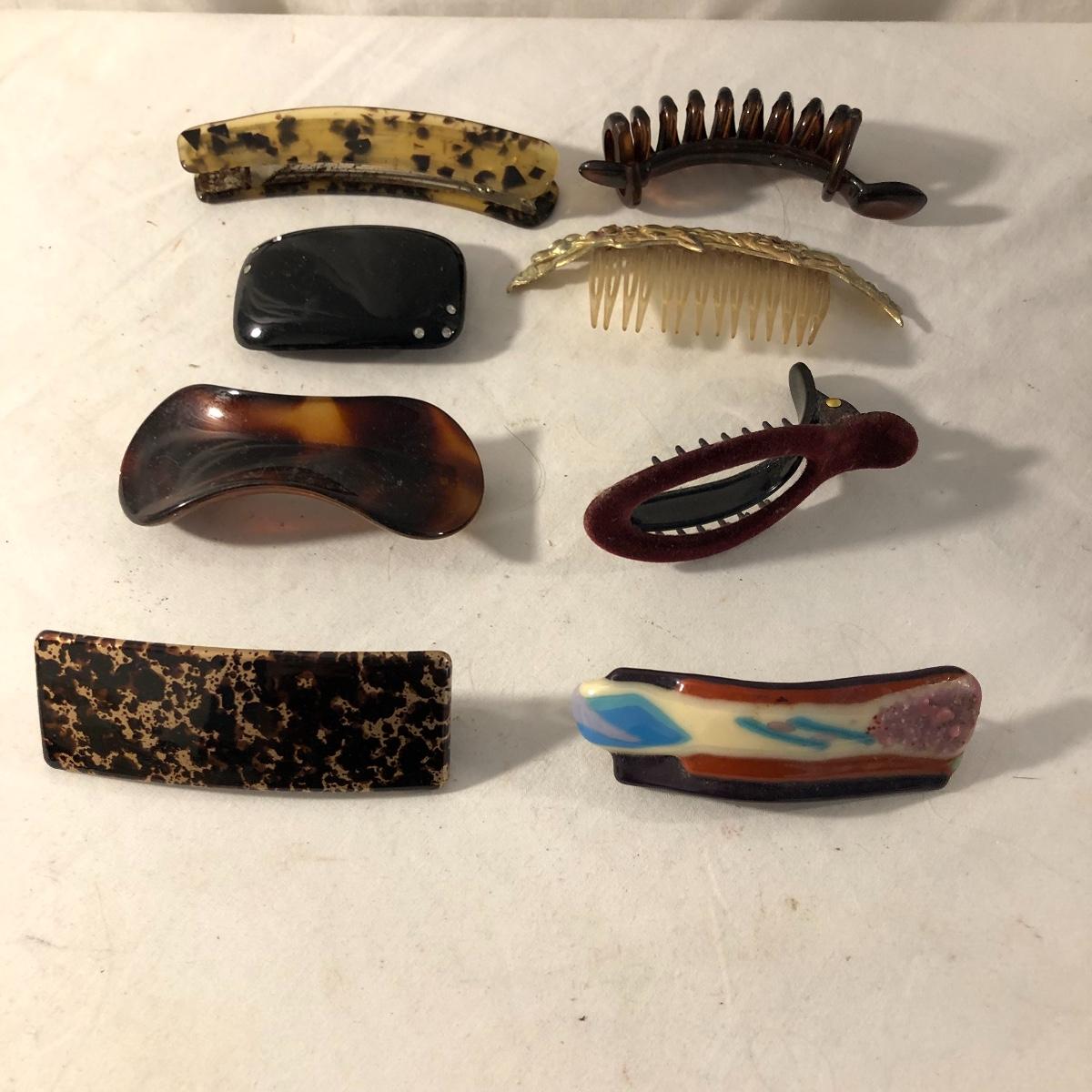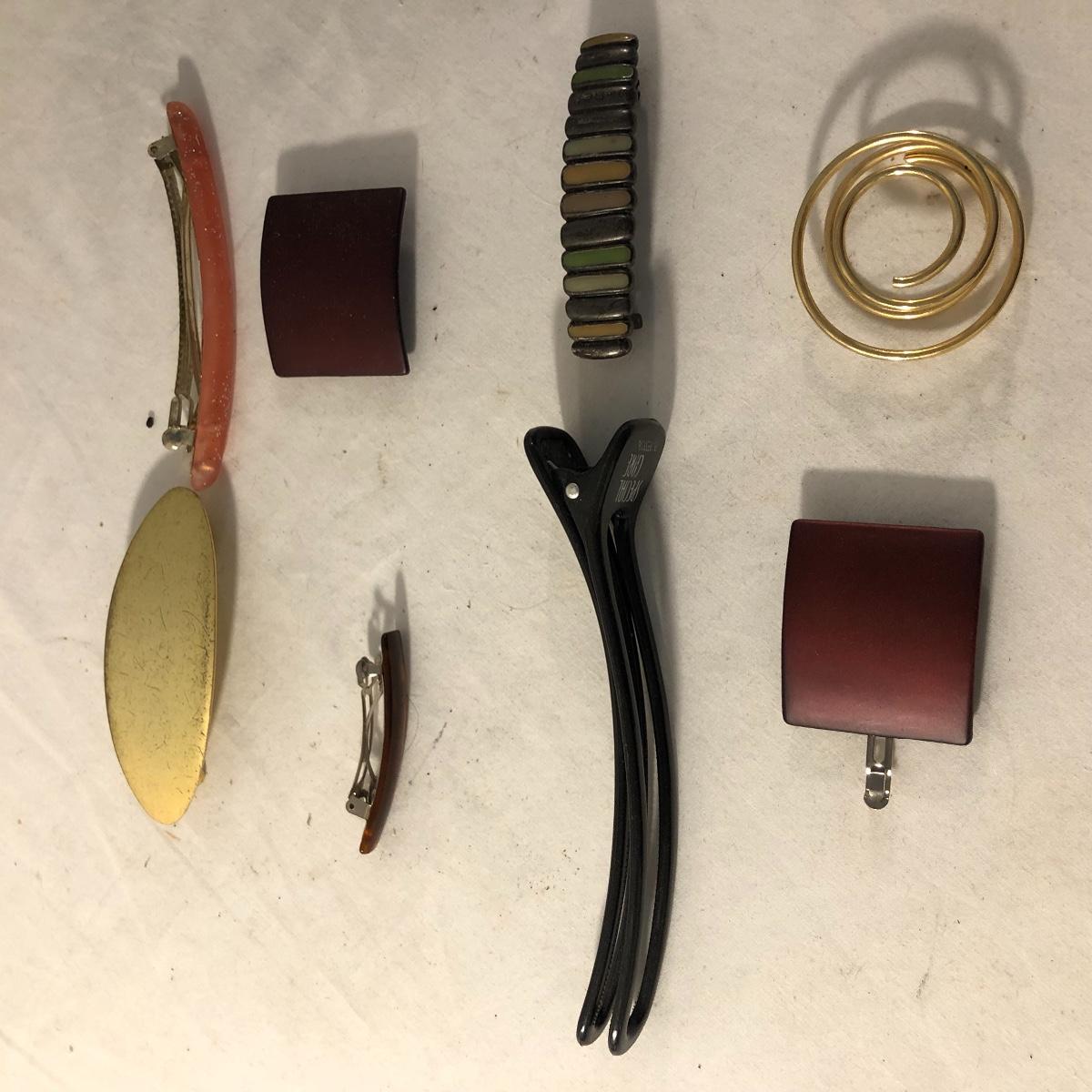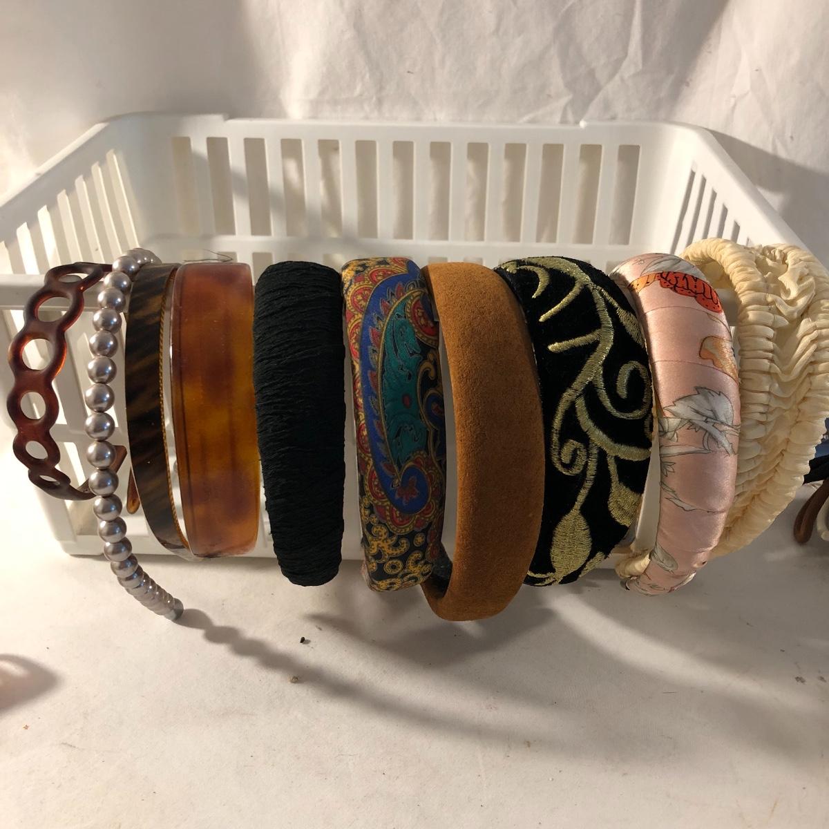 Lot includes a selection of size small gloves in a variety of materials that includes leather, cloth, suede and more. Also includes a assortment of hair accessories including bands, clips and ties in plastic, metal and cloth. Last but not least is a nice selection of handkerchiefs. Shipping Available.