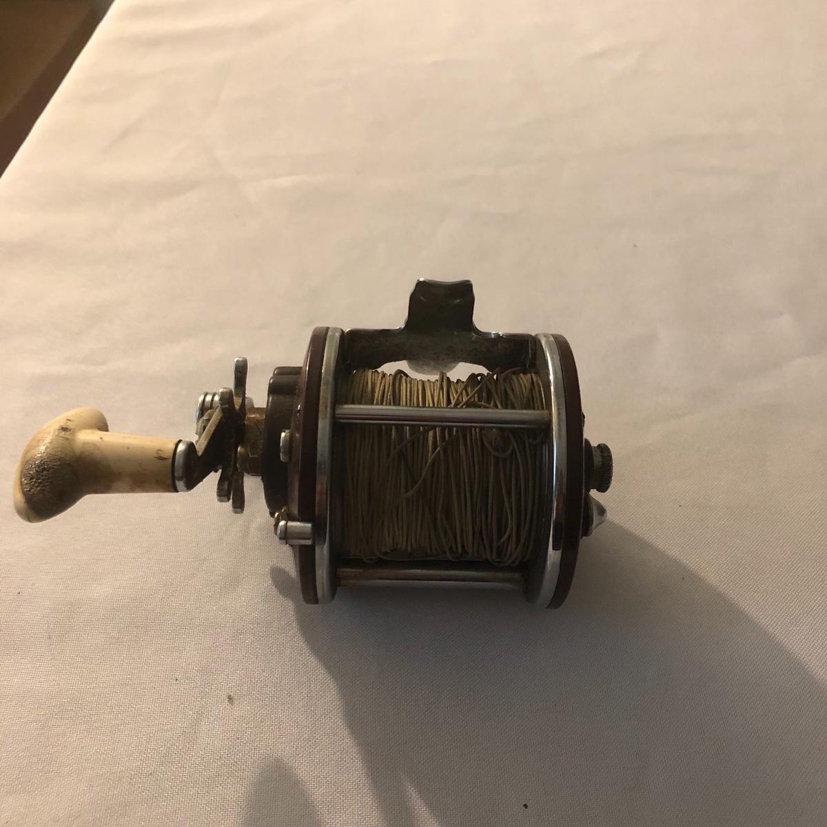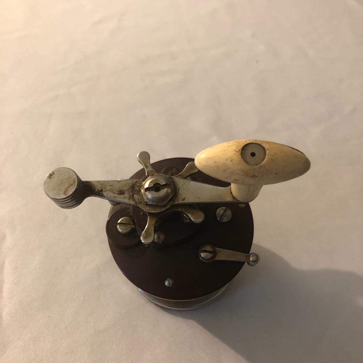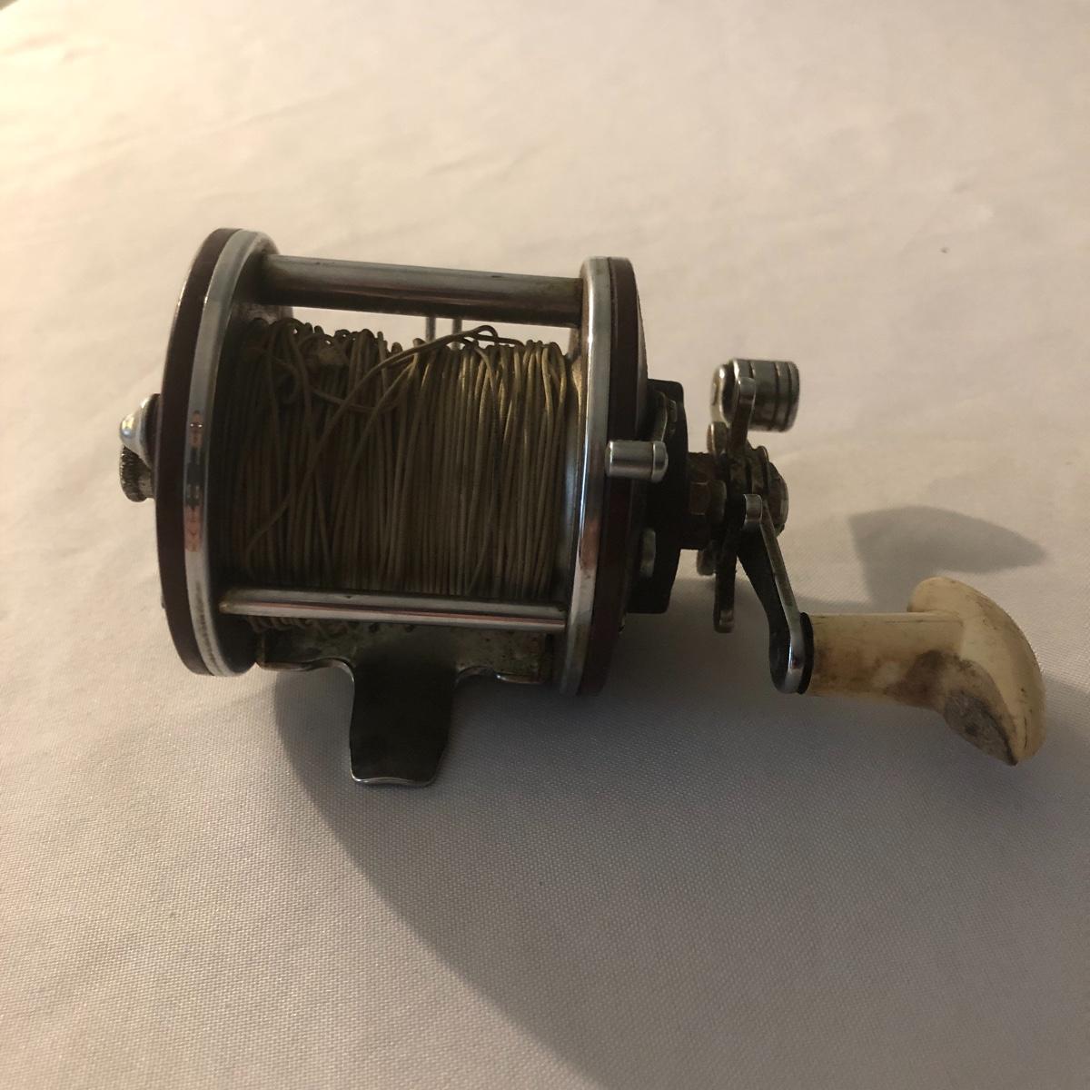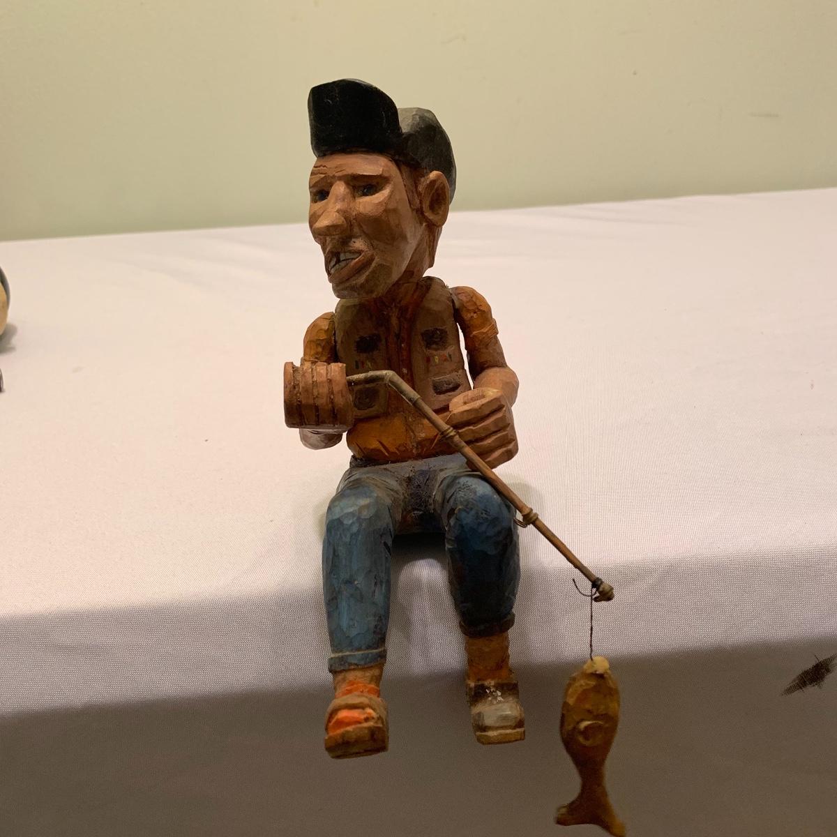 Get some fish on the line with these two fishing reels. Lot includes Johnson Centennial # 120 and Penn Peer # 109 bait casting reel. Also includes a wooden fisherman that has a broken pole.
