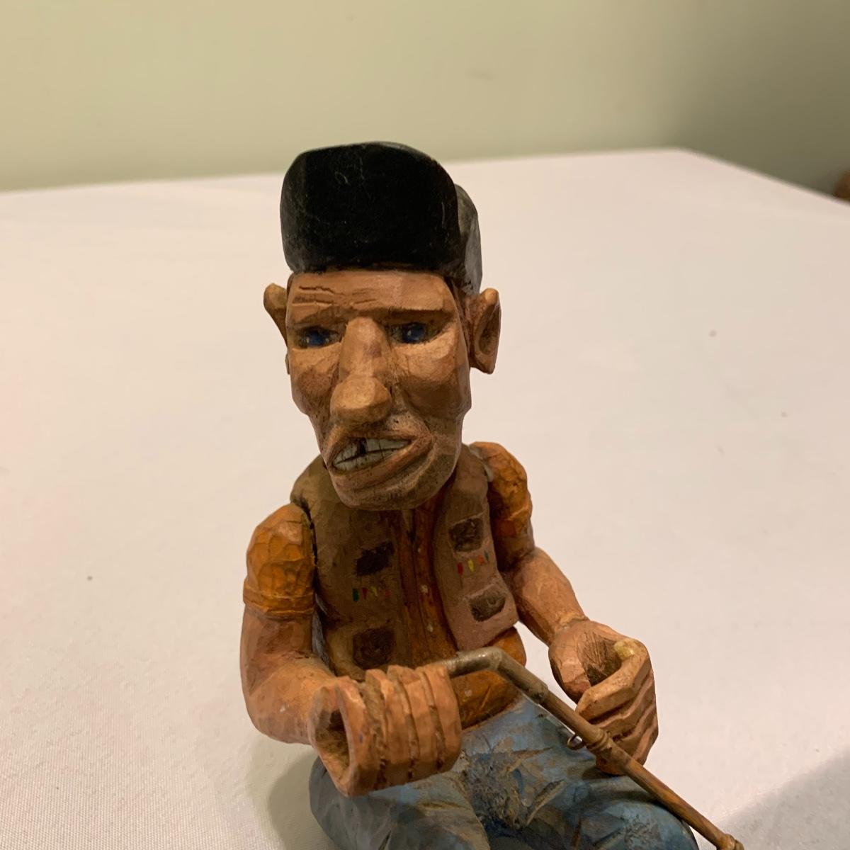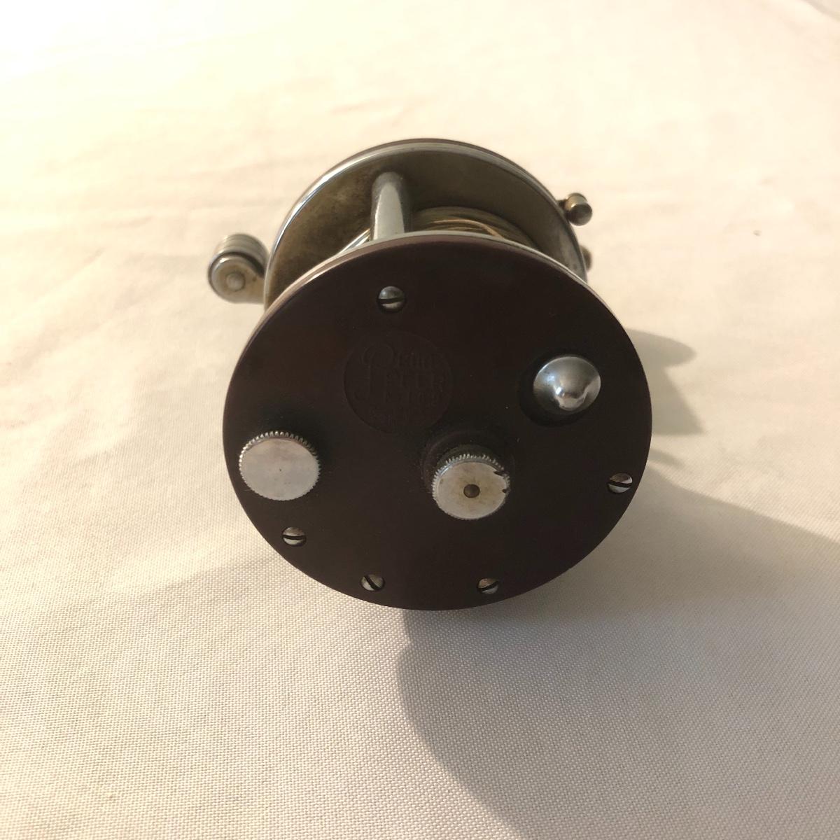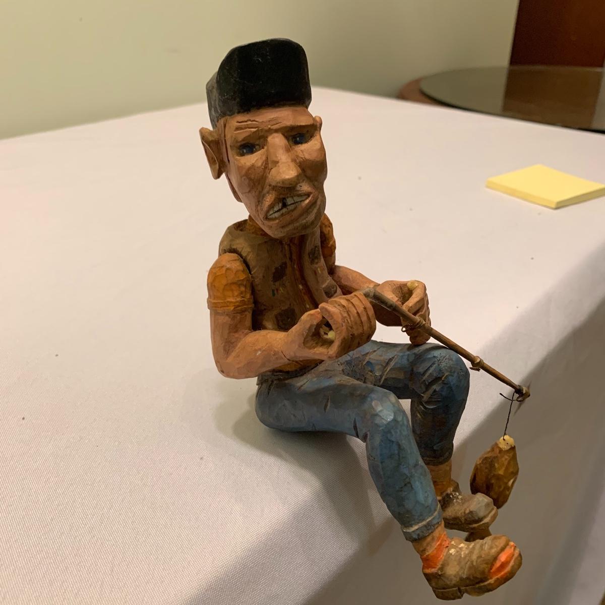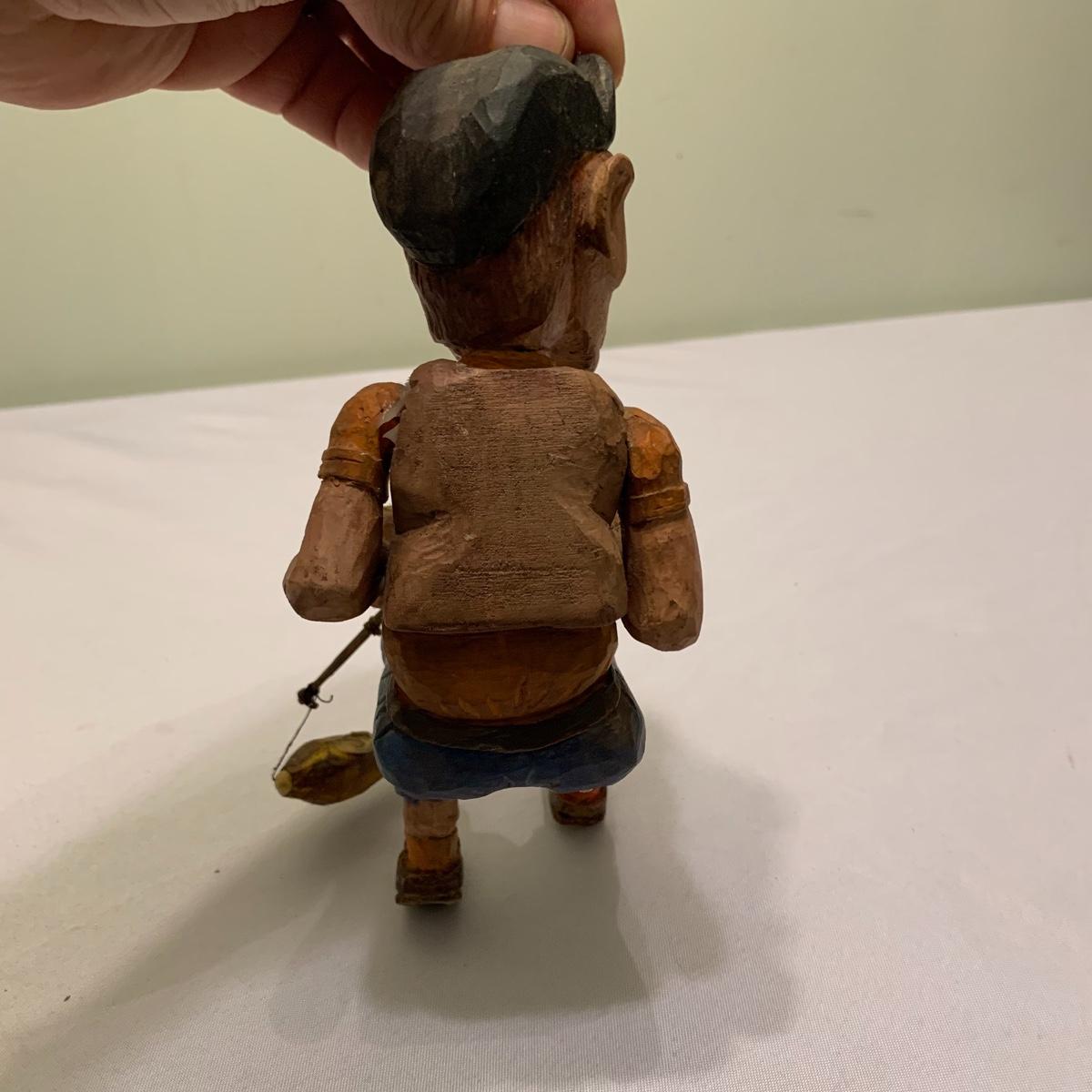 Get some fish on the line with these two fishing reels. Lot includes Johnson Centennial # 120 and Penn Peer # 109 bait casting reel. Also includes a wooden fisherman that has a broken pole.