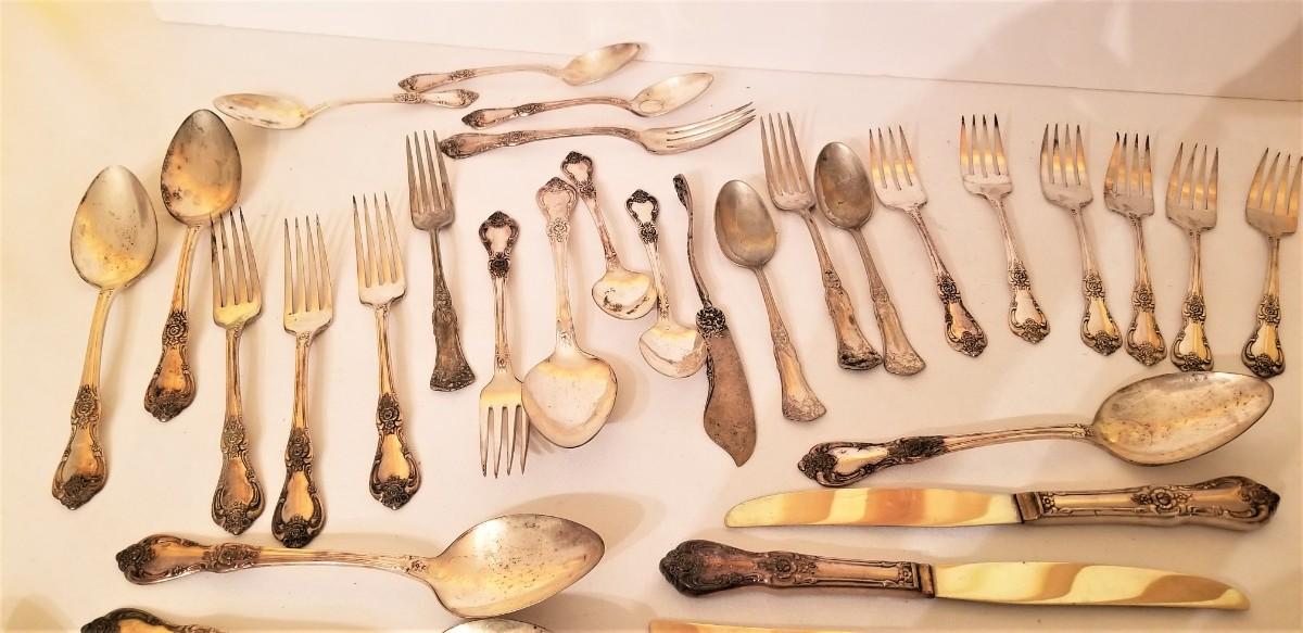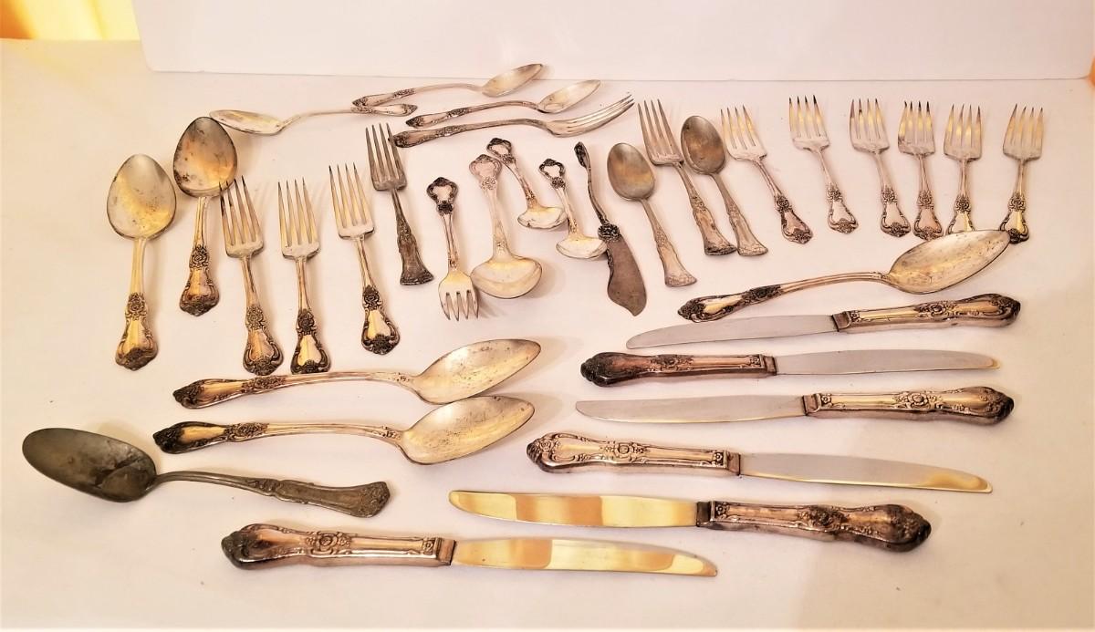 You get all you see here - 34 pieces antique/vintage silverplate flatware. We have not attempted to polish. Use it for its intended purpose or they are perfect for crafting (jewelry, Wind Chimes, etc).